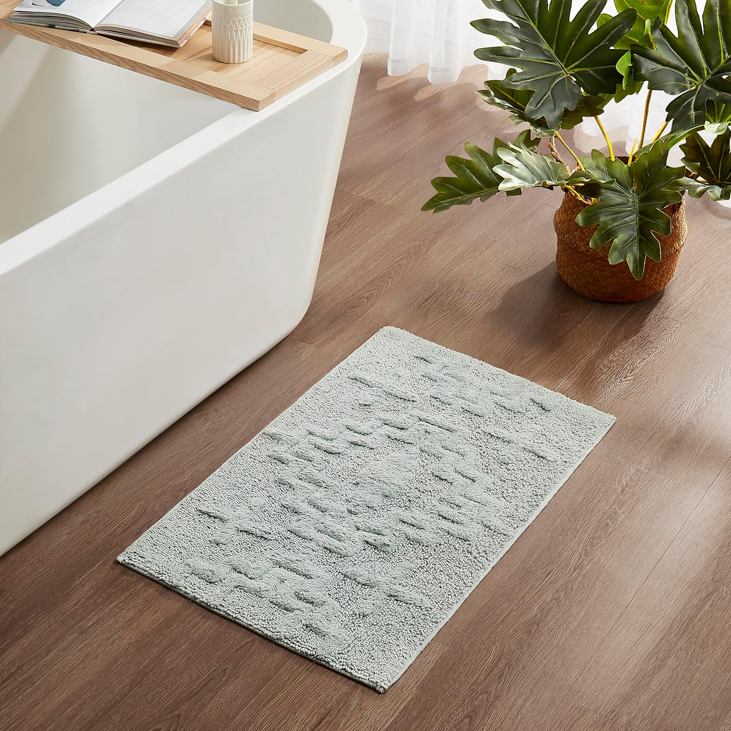 100% Cotton Construction: Crafted from premium, 100% cotton, this bath rug offers exceptional softness underfoot and superior absorbency. The high-quality cotton ensures long-lasting durability while maintaining a plush and comfortable feel.