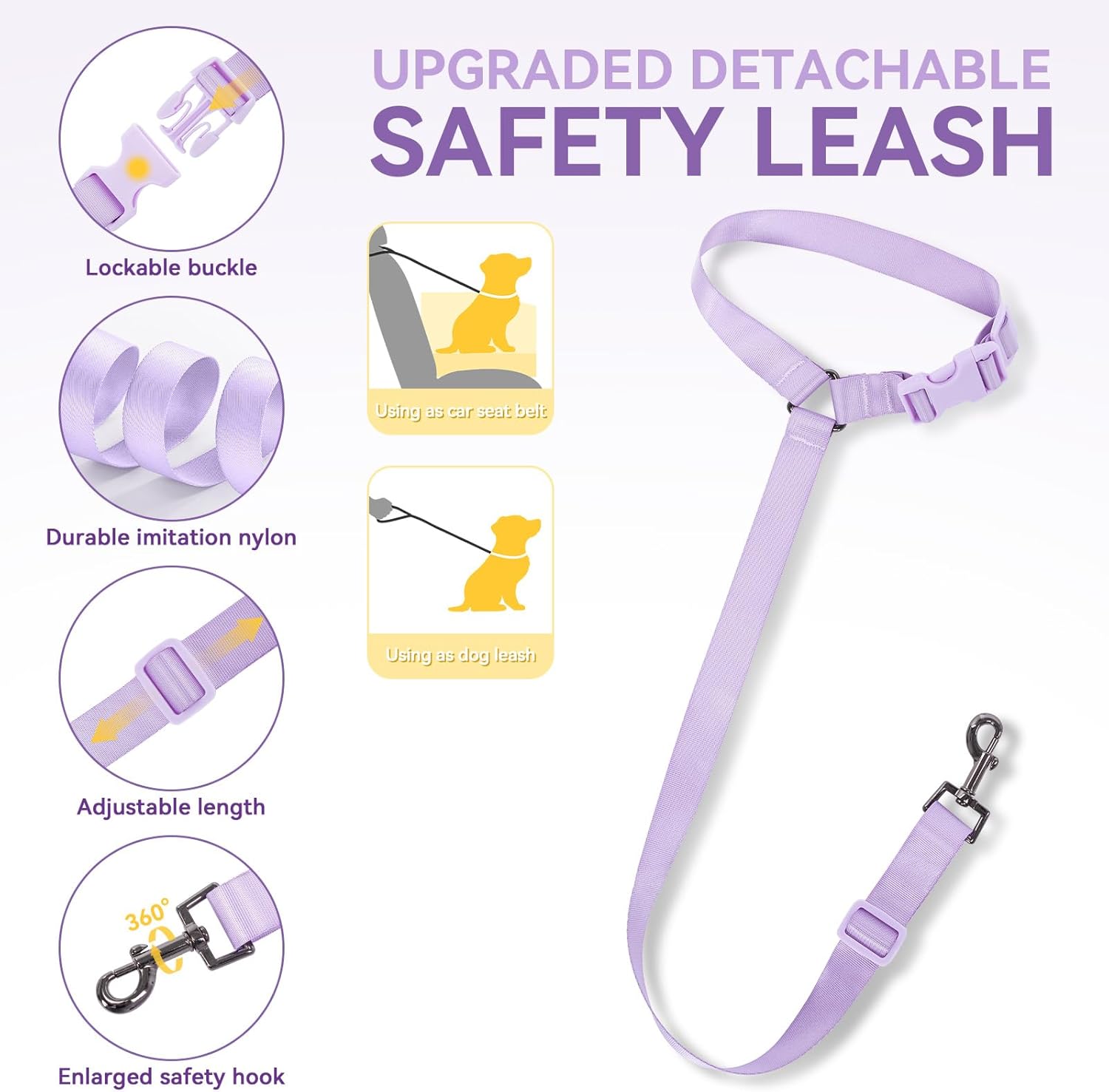 [Patented Buckles Design for More Safety] With your pet’s safety as our top priority, the dog car seats for small dogs include innovative patented buckles and a detachable safety leash. That ensures the dog booster car seat stays firmly in place while preventing your pet from jumping out