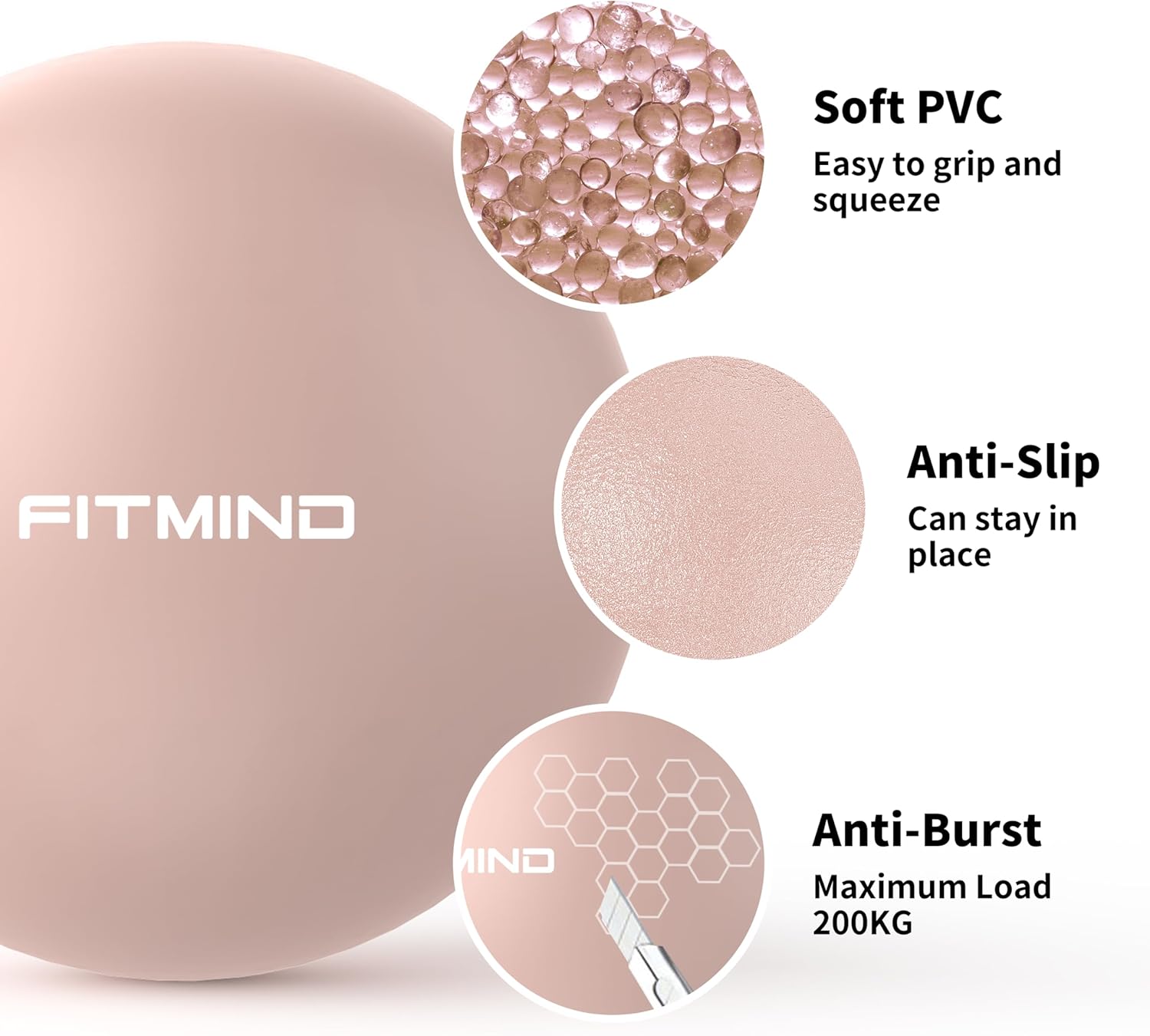 【PROFESSIONAL DESIGN】The pilates ball is effectively explosion-proof, honeycomb structure, bigger than other pilates balls, up to 10 inches in diameter, safer and more reliable. The small yoga ball is made of soft, flexible, reliable and skin-friendly PVC. The bending ball is super strong and load bearing, with 1mm wall thickness, load bearing up to 100kg, frosted texture, non-slip and stable.