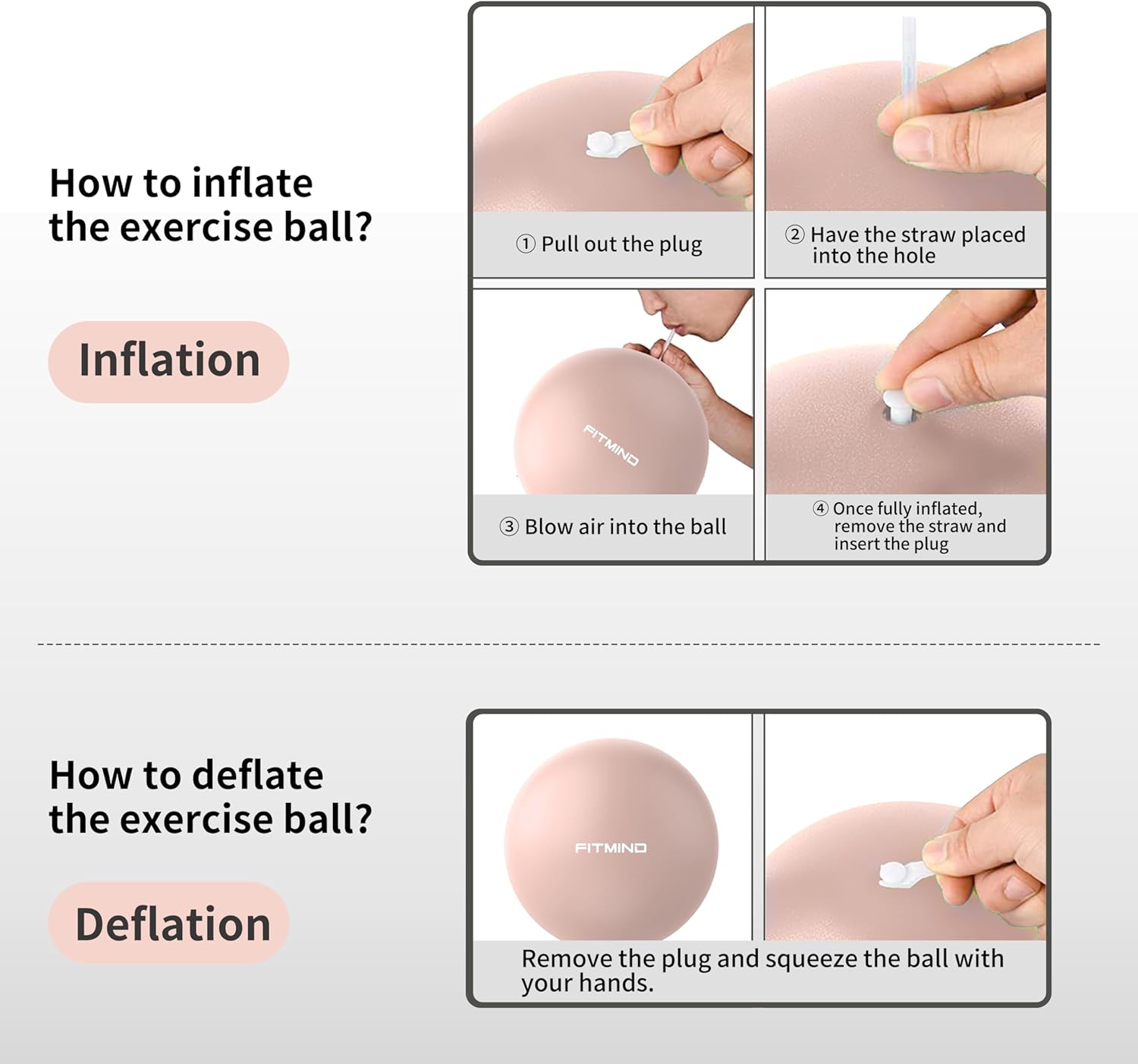 【EASY TO INFLATE AND STORE】The physical therapy ball is easy to inflate with the included tube and breath, no pump is required. The mini size and diameter of Stability ball makes it convenient to carry and store.
