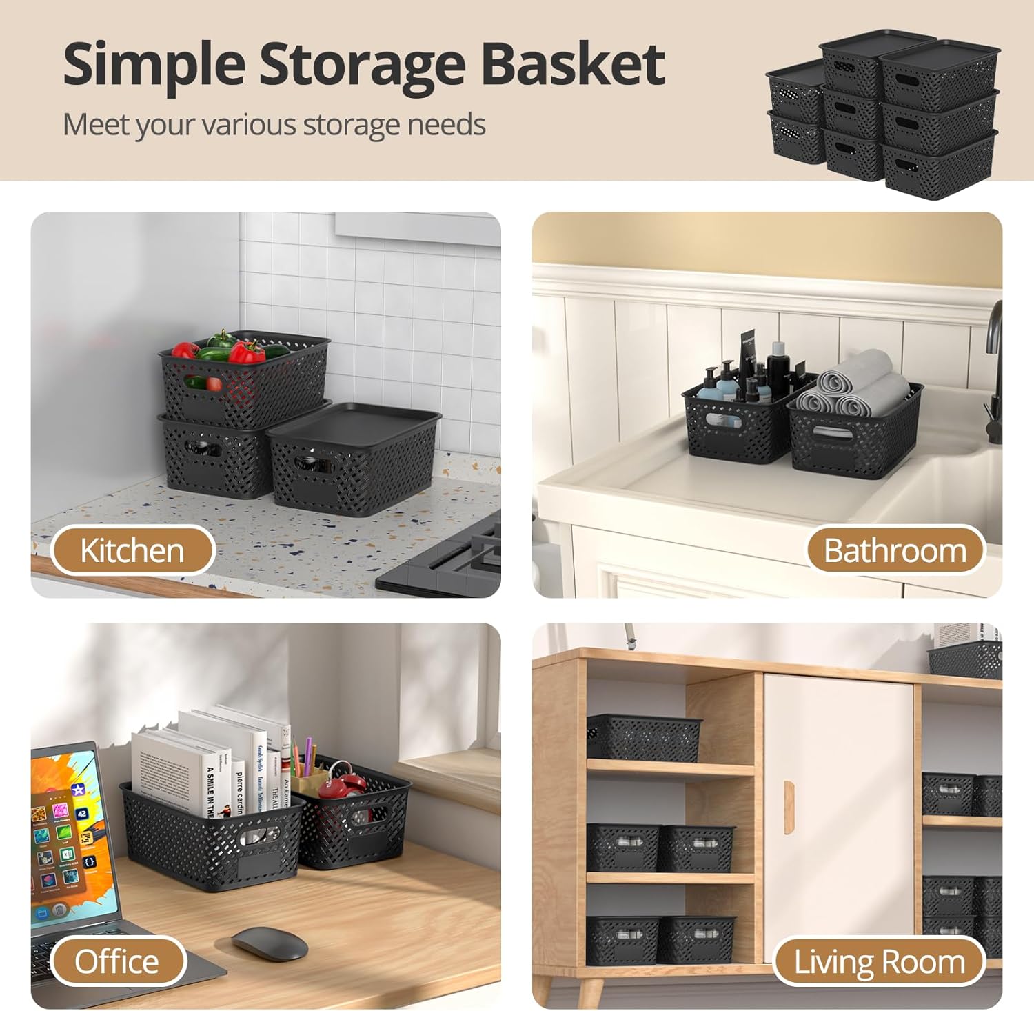 Versatile Usage: These plastic baskets are perfect for organising and storing all kinds of office supplies, toys, toiletries, etc. in your home or office, and can be placed in wardrobes, shelves, desks, living rooms, bedrooms, kitchens, bathrooms, playrooms and garages