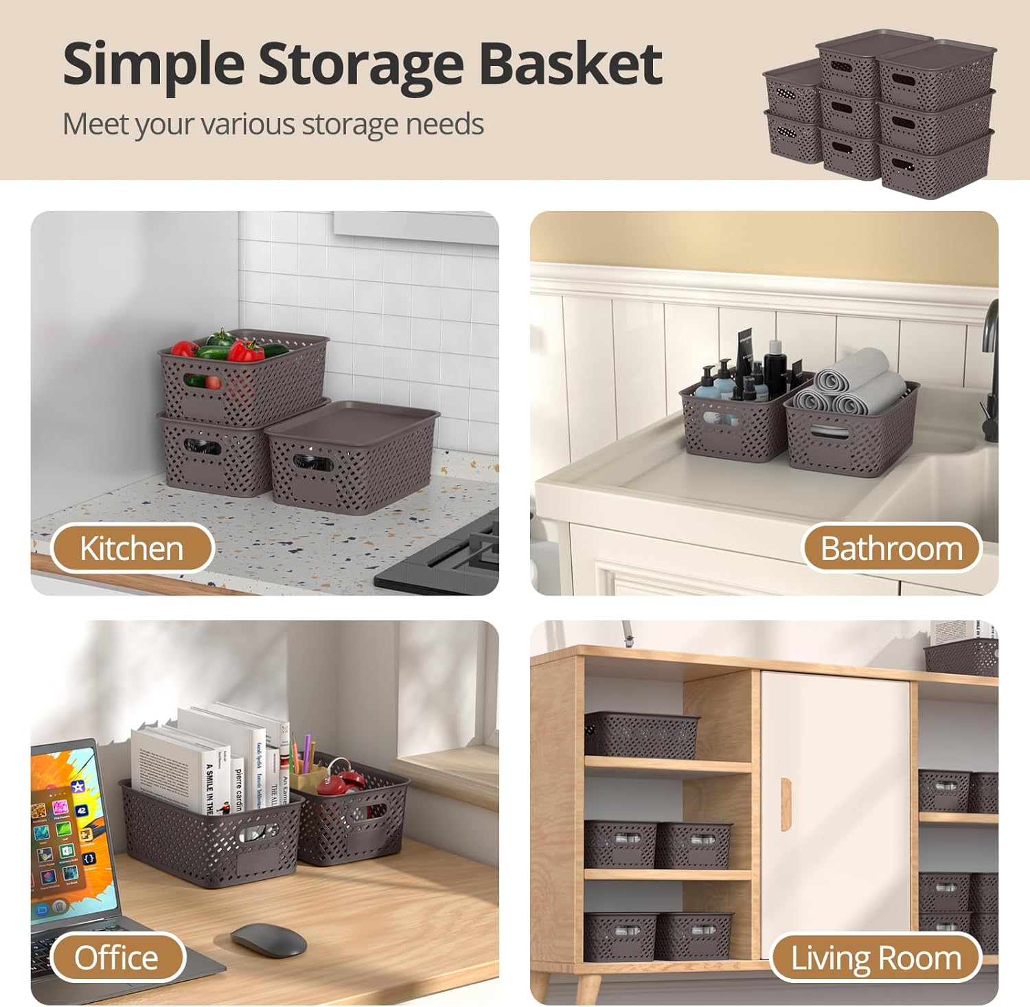 Versatile Usage: These plastic baskets are perfect for organising and storing all kinds of office supplies, toys, toiletries, etc. in your home or office, and can be placed in wardrobes, shelves, desks, living rooms, bedrooms, kitchens, bathrooms, playrooms and garages