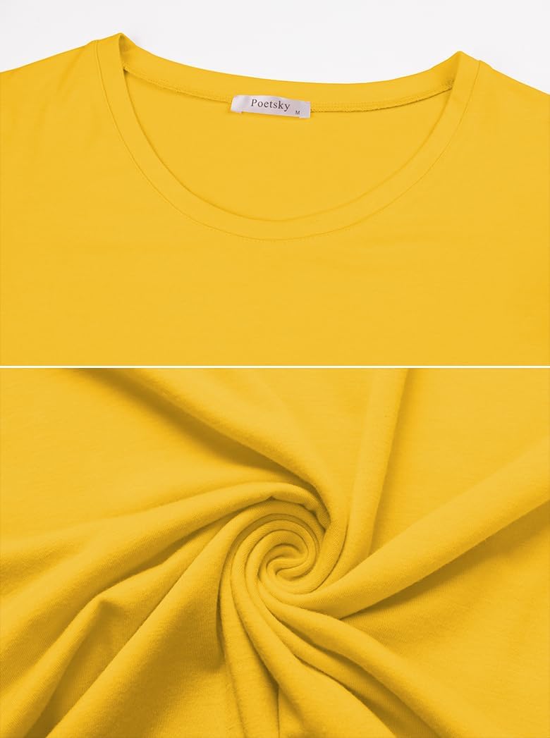 The fabric of the 3/4 sleeve shirts is not too thin or too thick,3/4 sleeve length a little below the elbow, this basic tops is long enough to cover your hips.