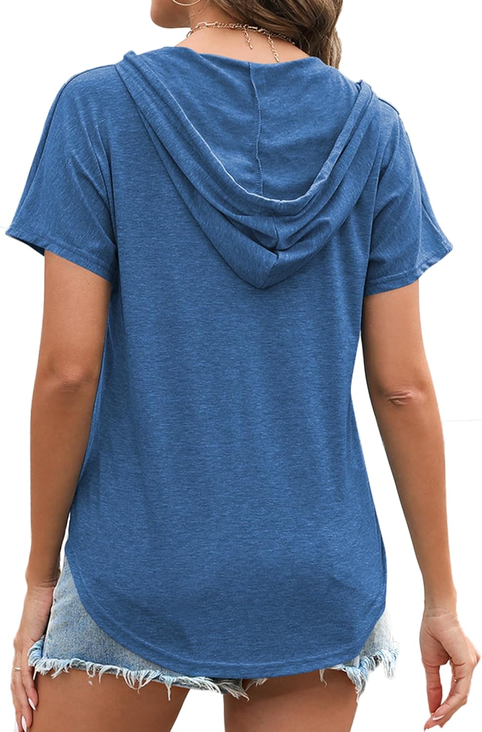 Poetsky Womens V Neck Long Short Sleeve Shirts Drawstring Hoodies Lightweight Pullover Tops