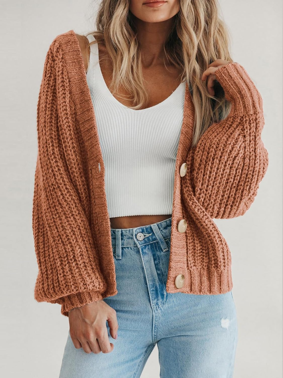 Solid Color Womens Cardigan V Neck Chunky Knit Spring Cardigans for Women 2025 Loose Sweater