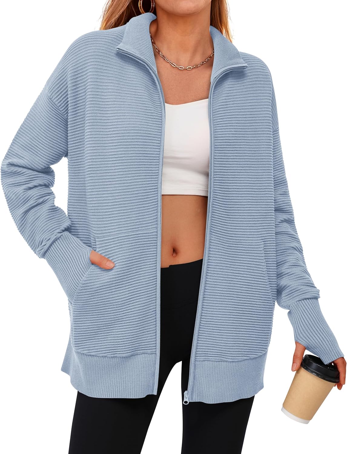 PRETTYGARDEN Zipper Sweaters for Women Long Sleeve Fall Jackets for Women 2025