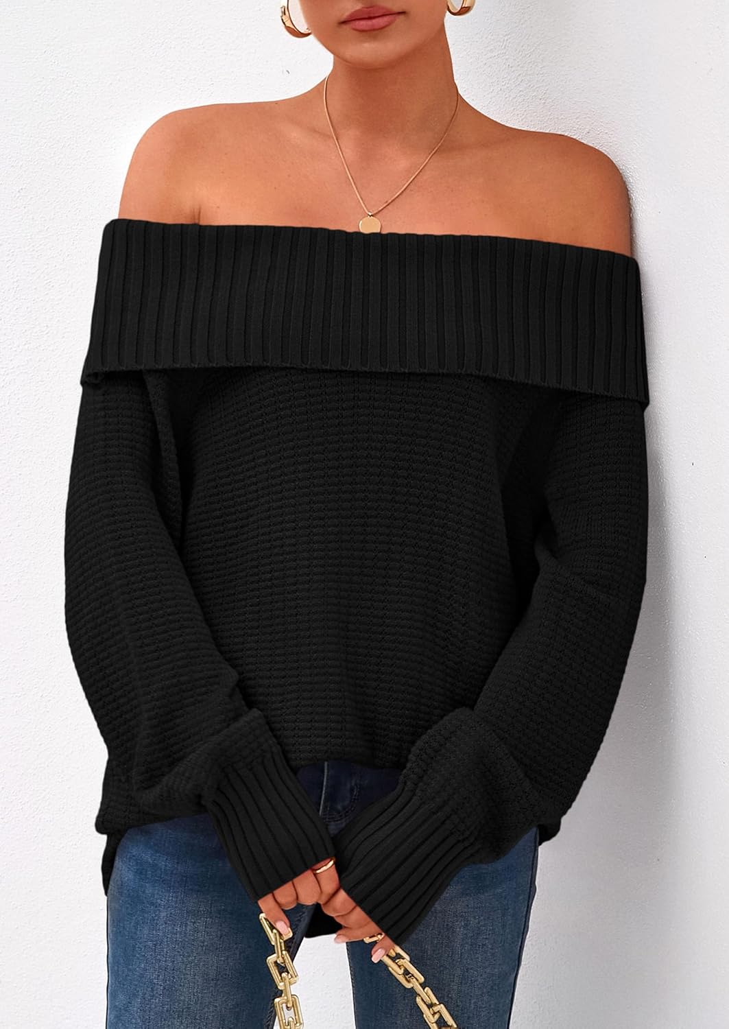 PRETTYGARDEN Womens Off Shoulder Sweater Loose Fit Casual Going Out Tops