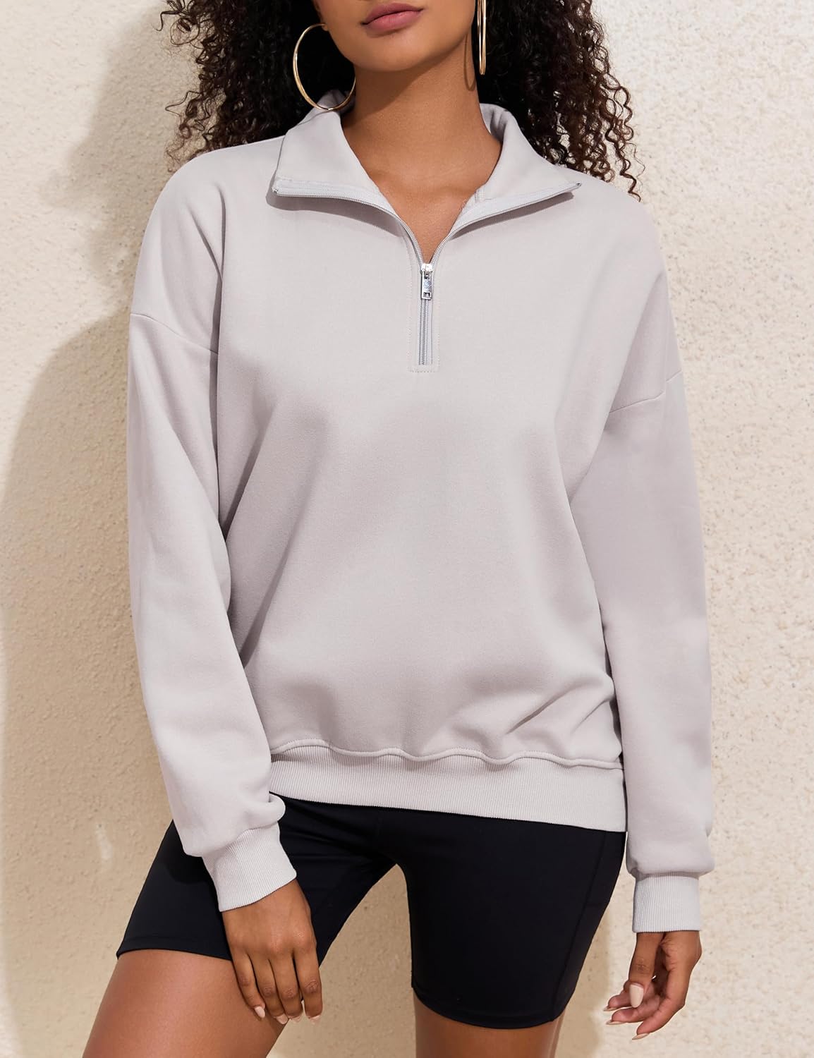 PrettyGuide Women’s Oversized Quarter Zip Pullover Sweatshirt
