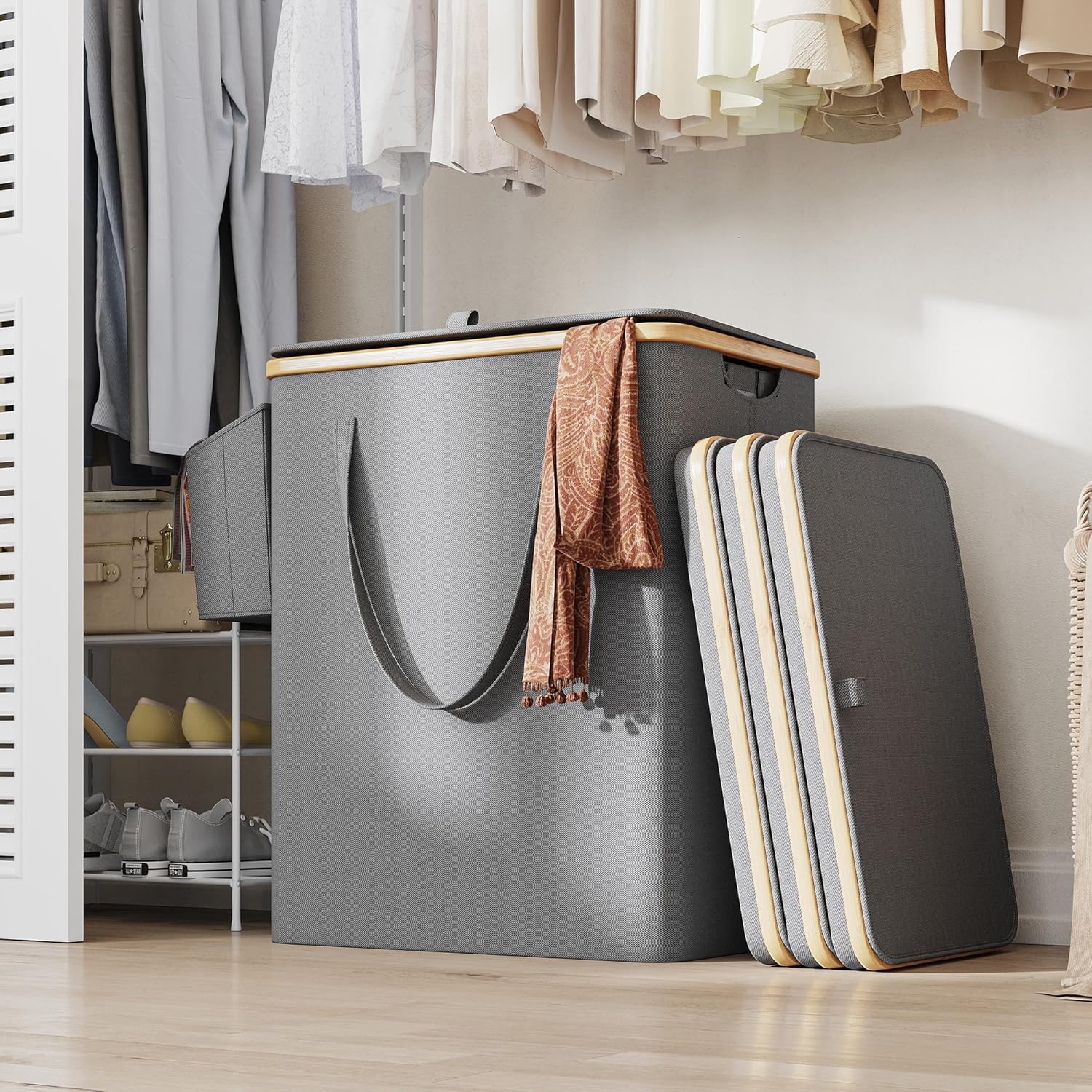 【Sturdy Hamper with Lid】 The main materials are 600D reinforced oxford cloth and 8mm fiber rod, which makes our clothes hampers for laundry sturdy and stable , not easy to pour, and more secure and comfortable during use. Our hamper comes with a lid, practical and beautiful, making sure no clutter of clothing in sight until regular laundry days