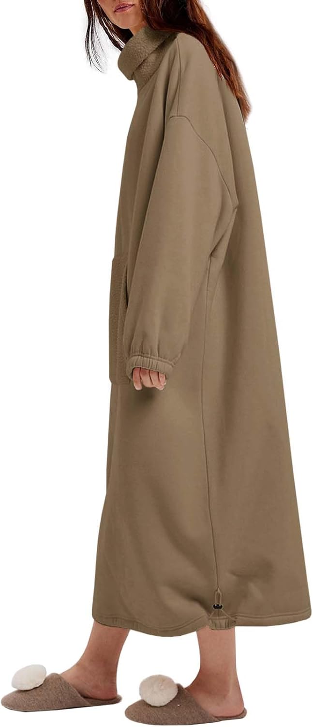 ReachMe Womens Oversized Long Fleece Sweatshirt Dresses Thickening Lounge Maxi Dress Plush Turtleneck Pullover Nightgowns