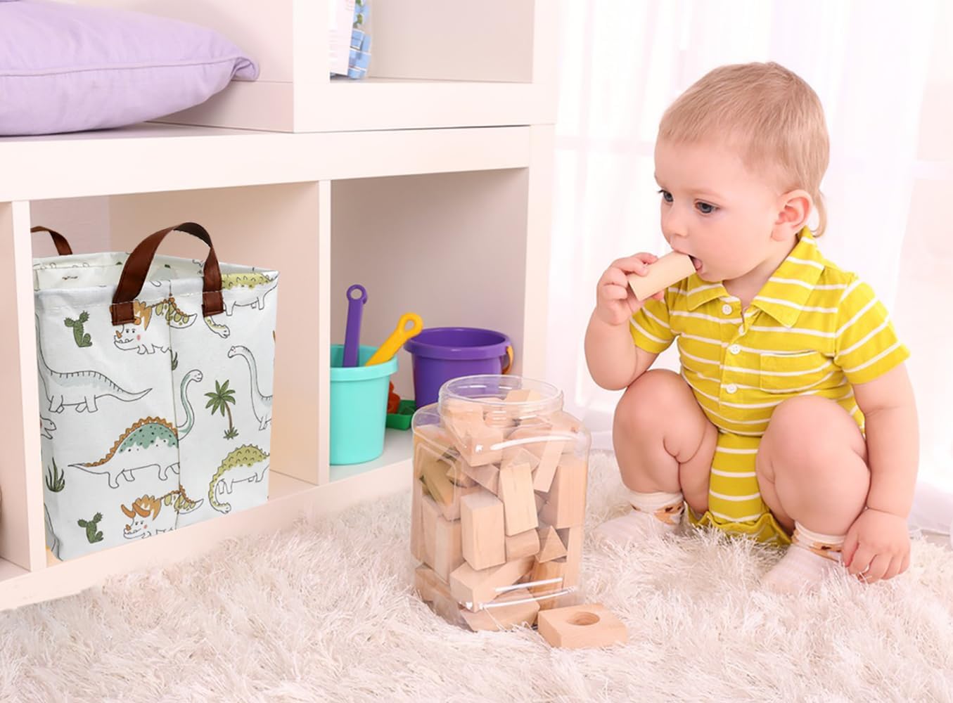 Customers love the toy basket’s unicorn pattern and vibrant dinosaur colors, finding it surprisingly roomy and perfect for nursery or child’s room decor. Moreover, the basket is easy to clean and functional, with one customer noting it can hold 2 sleeves of diapers. However, opinions on sturdiness and value for money are mixed, with some finding it well-made while others describe it as flimsy and cheaply made.