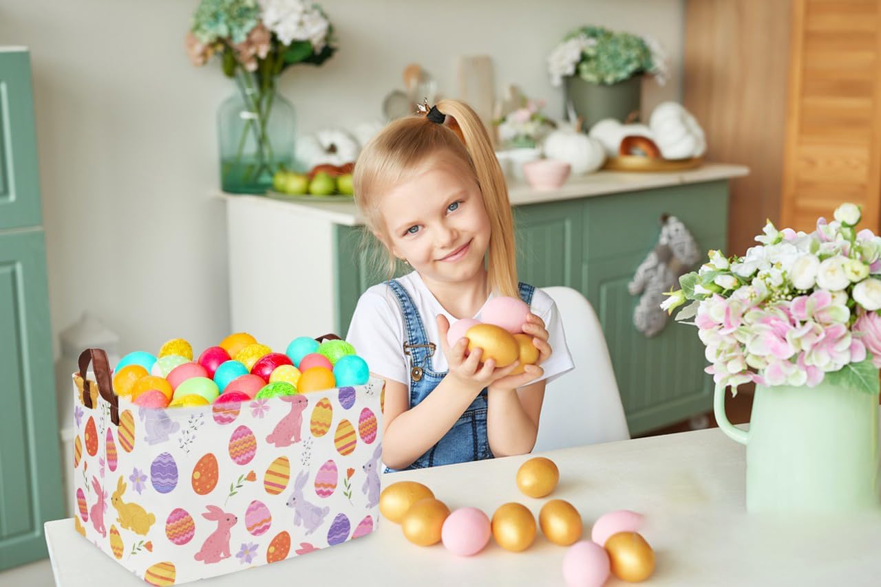 APPLICABLE OCCASIONS:The easter basket for kids can be placed in the laundry, bedroom, living room, baby room, kitchen, or anywhere you like.The laundry basket can be used as a home decoration or as a family organization tools,easter room decor.