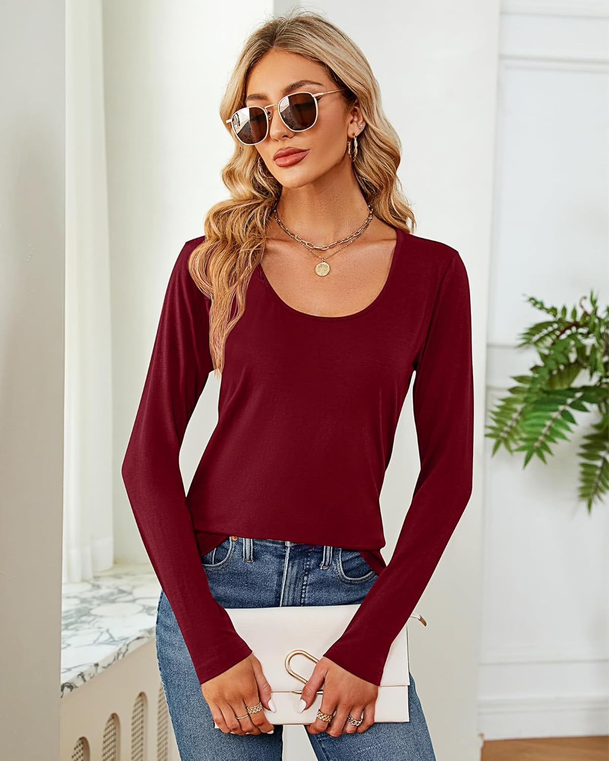 Solid Color Basic Layer Shirts for Women
