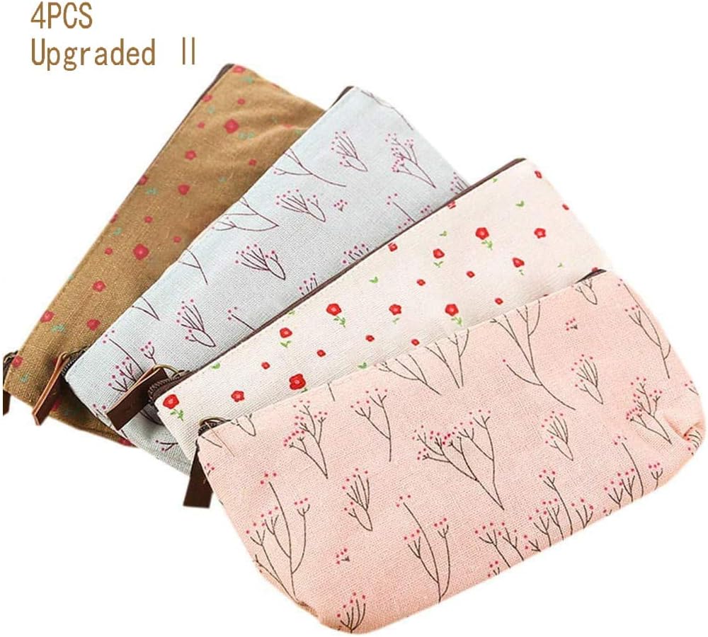 Rolybag Countryside Flower Floral Cosmetic Makeup Bag Cute Floral Flower Canvas Zipper Pencil Pen Cases, Multi-functional lovely Fabric Coin Purse(4 Pcs)