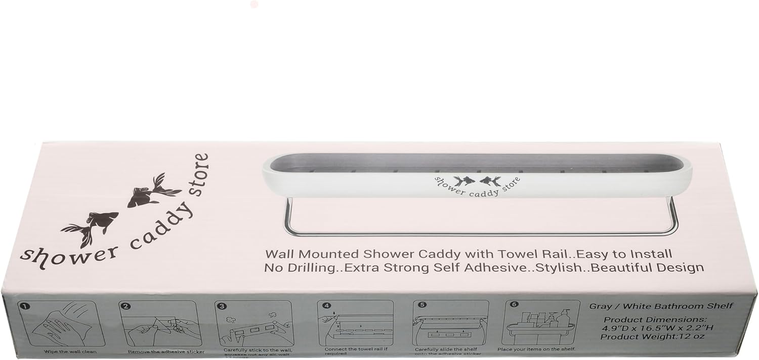 Extra-Large Size: Dimensions of 420mm by 120mm provide ample storage for bottles and more.Modern Design: A minimalist white finish complements any bathroom decor.Strong and Secure: Durable materials and adhesive ensure a sturdy, drill-free installation.Convenient Towel Rail: Keep your towels within easy reach for added functionality.