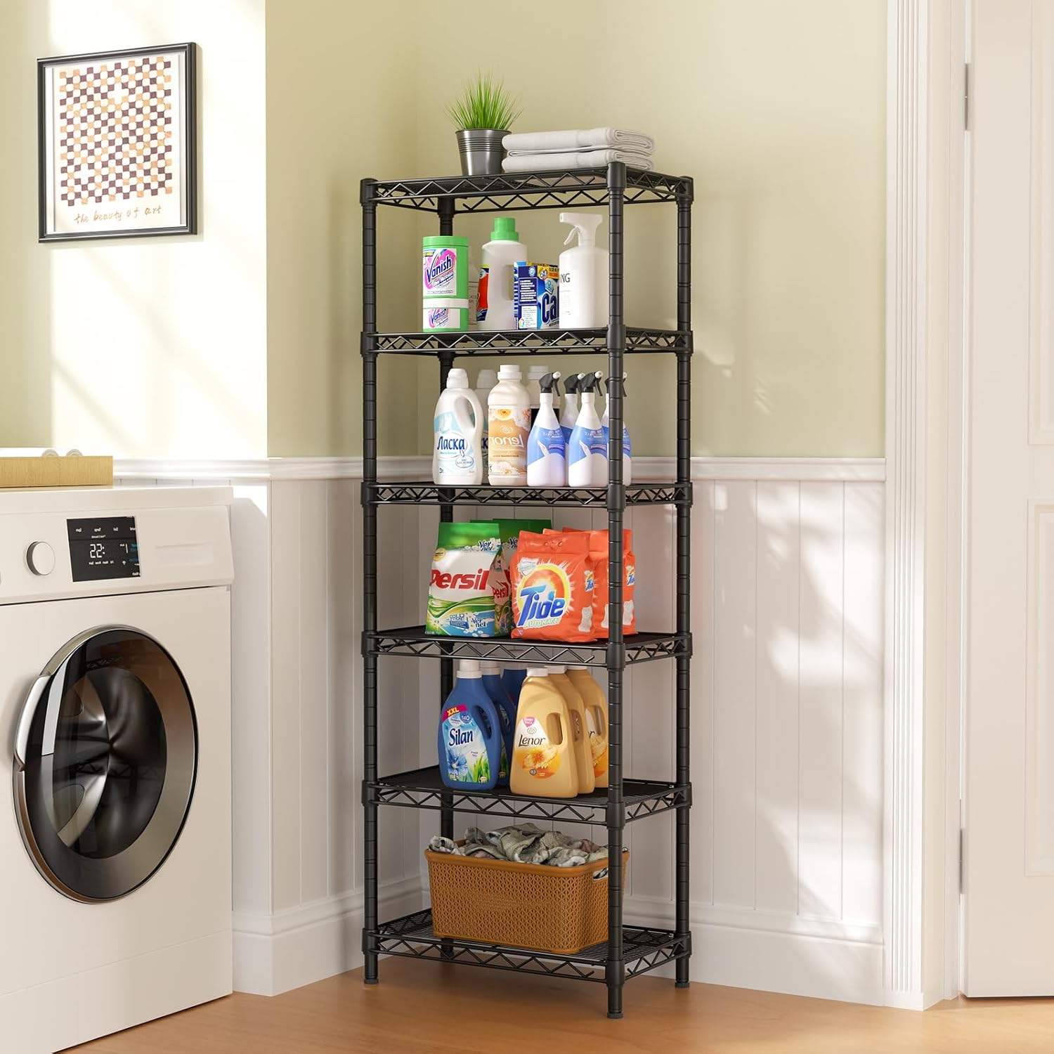 Convenient Home Storage: Metal wire shelves with adjustable spacing (10″ D x 16″ W x 60”H) make perfect for narrow spaces or room corners such as kitchens, bathrooms, laundry rooms, balconies, garages, entries, or offices.
