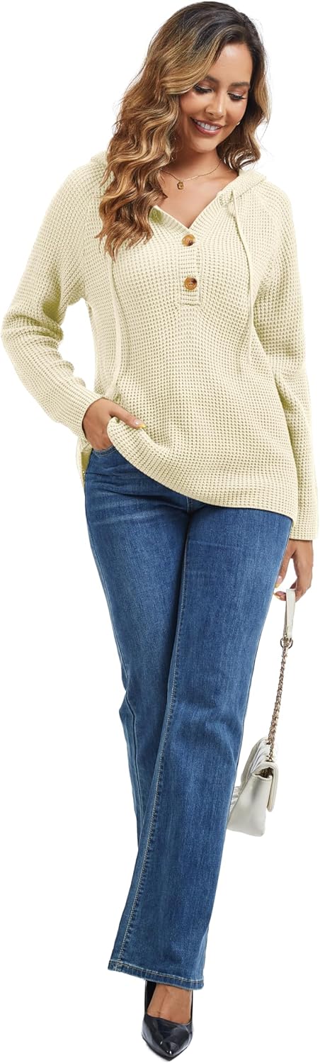 Sixstar Womens V Neck Long Sleeve Knit Hoodies Fall Casual Pullover Tops