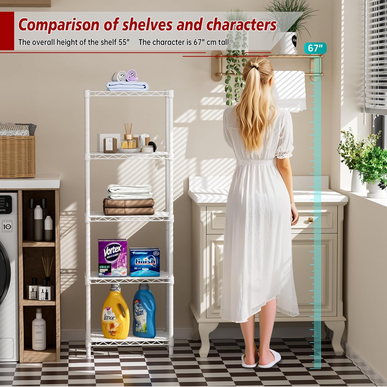 The shelf is specially coated for protecting it from any water, rust or corrosion. Not worry to place the shelving unit in your kitchen or bathroom, easy to wipe down clean