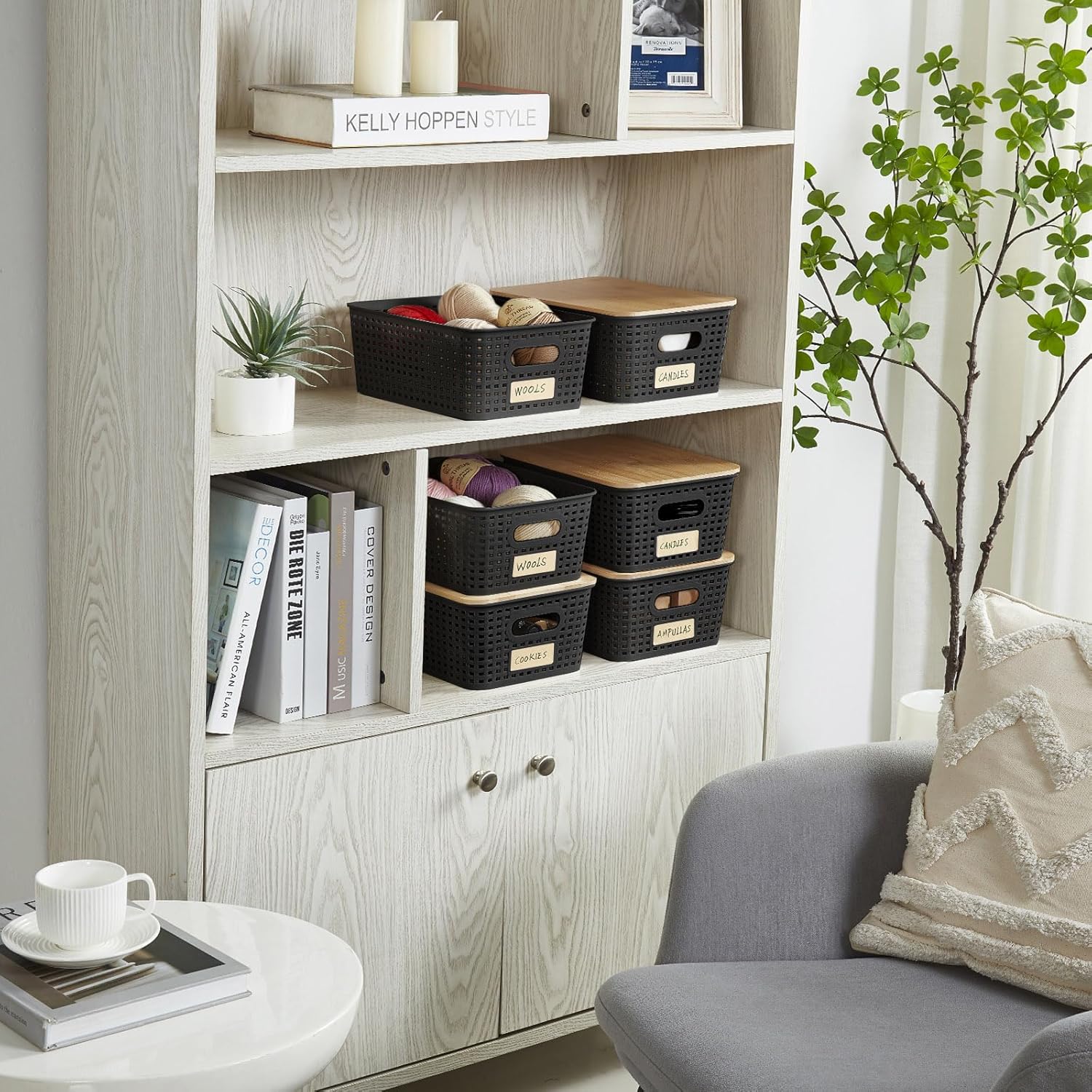 【Multi-purpose Storage bin】This decorative storage bins with lid Perfect for bathrooms, offices, kitchens, game rooms, closets, living rooms, playroom, small spaces, cafes, shelves, under-bed storage, and classrooms, it can neatly store markers, push pins, clips, towels, cosmetics, yarn, and building blocks. Embrace the versatility of this bamboo plastic storage solution and say goodbye to clutter for good.