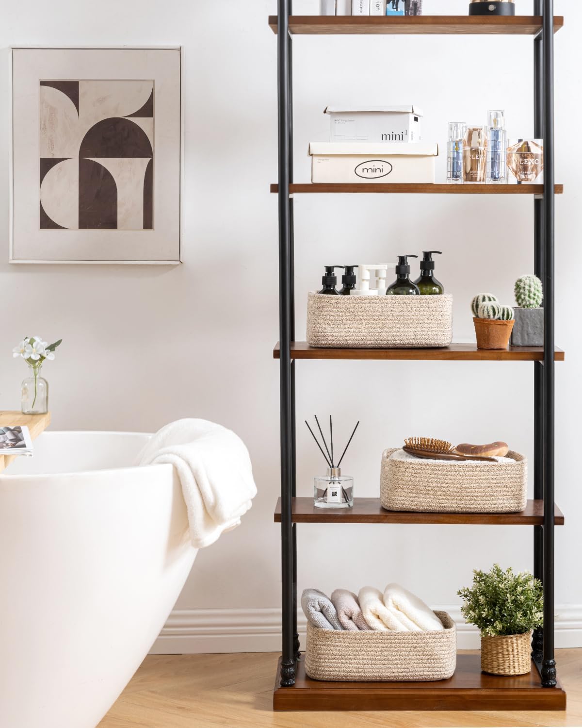 [ Elegantly Designed to Match Any Décor ] Our small rope basket creates a minimalist appearance, and it adds a touch of warmth and texture to any room. The classic solid color design ensures seamless integration with your existing aesthetics, complementing any decoration. Perfect as decorative storage baskets for shelves, cabinets, and any open display space, making them a stylish and practical addition to any decor, enhancing the overall aesthetics of your room