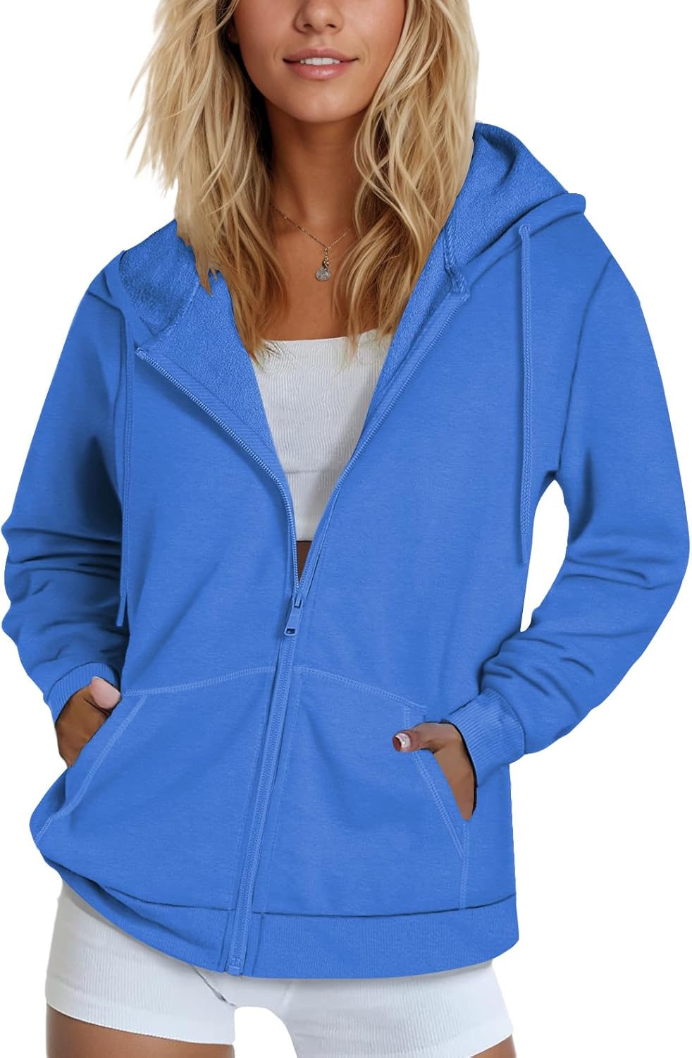 White Hoodie Women Lightweight Soft Comfy Sweatshirt Zip Up Hoodies