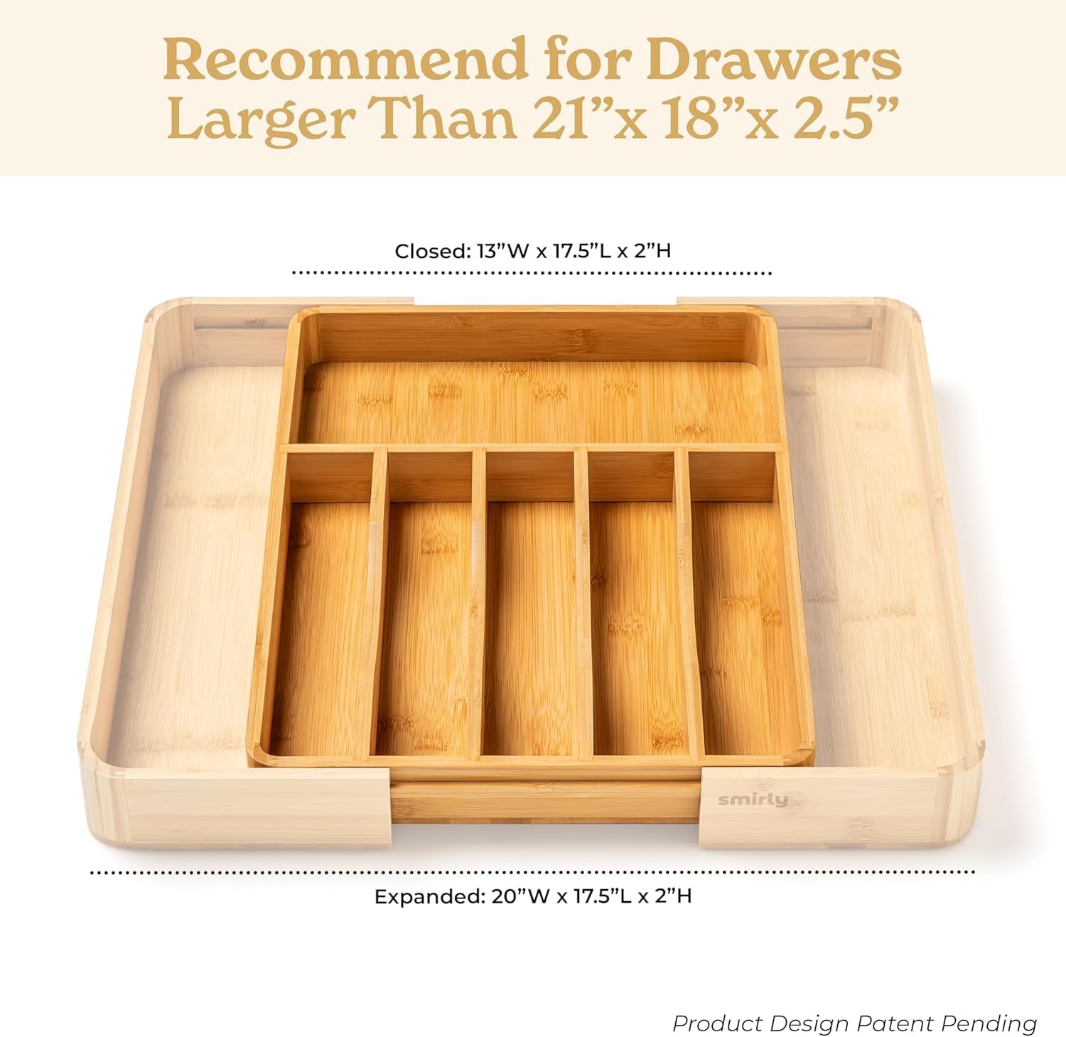 SMIRLY Silverware Drawer Organizer – Bamboo Kitchen Drawer Organizer, Adjustable Utensil Holder and Cutlery Tray, Drawer Dividers for Flatware and Kitchen Utensils