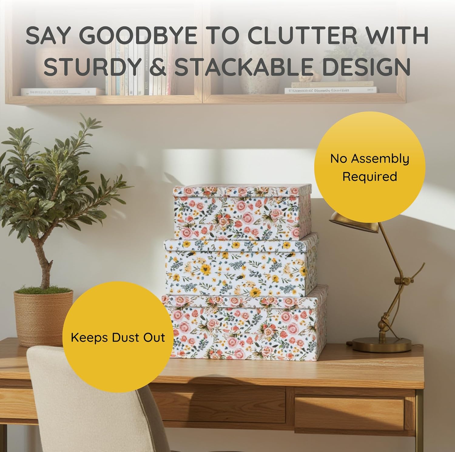 PERFECT STORAGE FOR EVERY SPACE —Stay one step ahead of clutter by using these sturdy paperboard storage boxes to organize every room in the house. These pretty boxes look great on an office shelf to hold important papers or office supplies. Use them in a craft room or to keep jewelry, sewing notions and hair accessories beautifully contained.