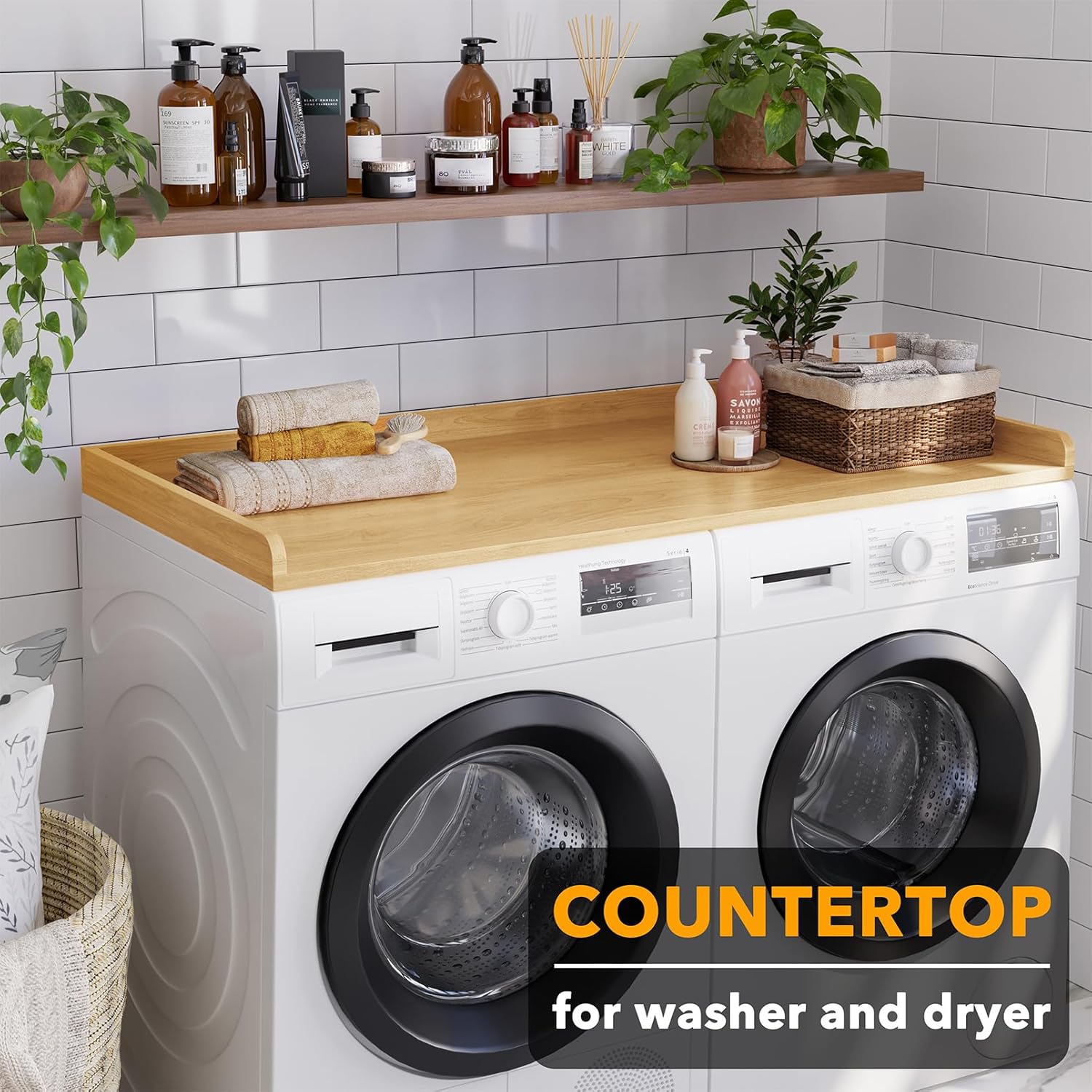 BEAUTIFUL COUNTERTOP- Keep your washer and dryer top space organized with this countertop; Make your laundry room storage functional by the spacious cover holder; Color Maple Wood; SIZE: 54″W x 27.5″D x 2.7″H