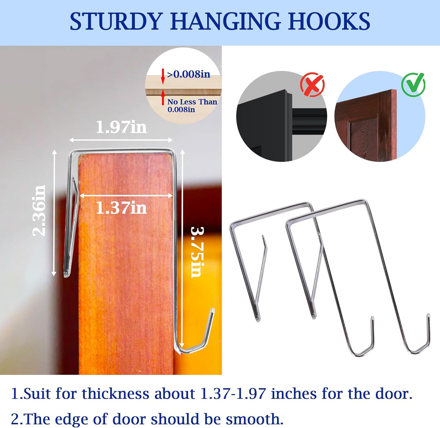 【Easy Installation】: Package included totlly 4 adjustable sturdy heavy metal hooks for the 2 pack over the door laundry hamper, they are easy to hang and stays securely in place, providing a convenient storage solution for any space.