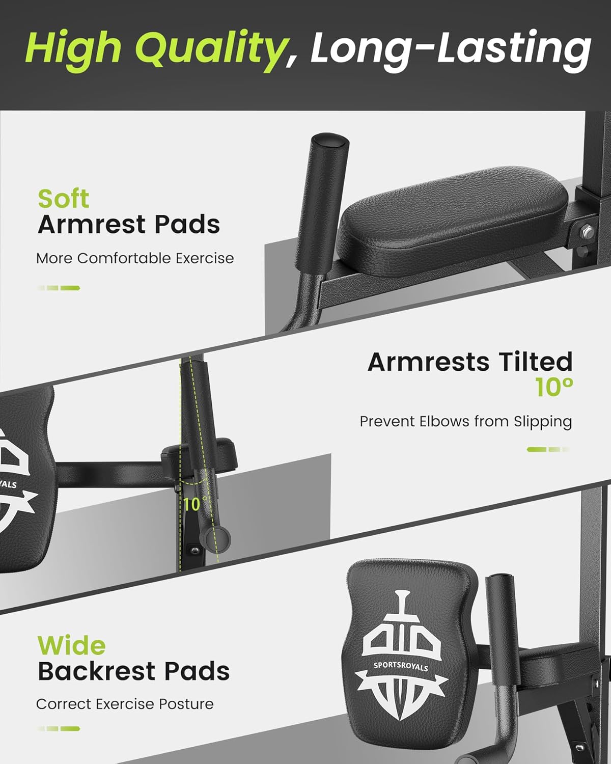 【3 In 1 Power Tower】- Sportsroyals multi-functional power tower that supports pull-ups, dips as well as push-ups, which help tone and target your arms, core, shoulders, chest, and back for a stronger body.
