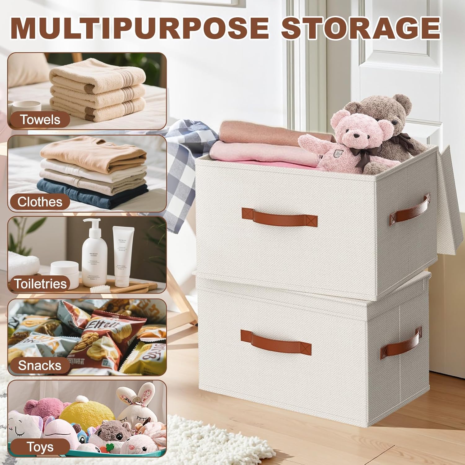 MULTI-SCENE VERSATILITY: Closet, nursery, office, or RV – Use as toy storage bins, shoe storage cube baskets organizers, or pantry storage bins with lids, Neutral tones match any decor style.