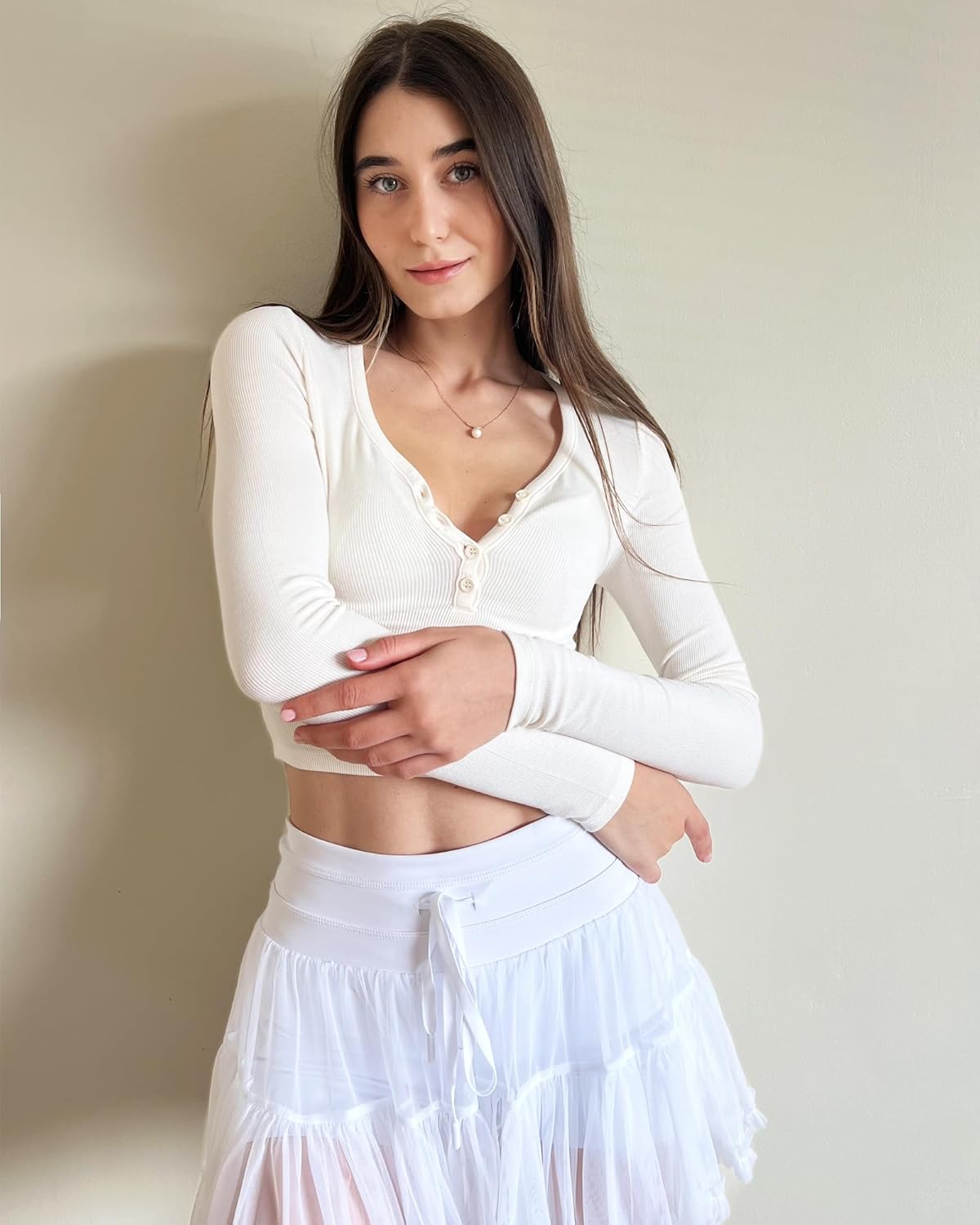 Stelle Henley Shirts for Women Long Sleeve Crop Top Ribbed Knit Button Slim Fitted Tops Casual Basic Blouse