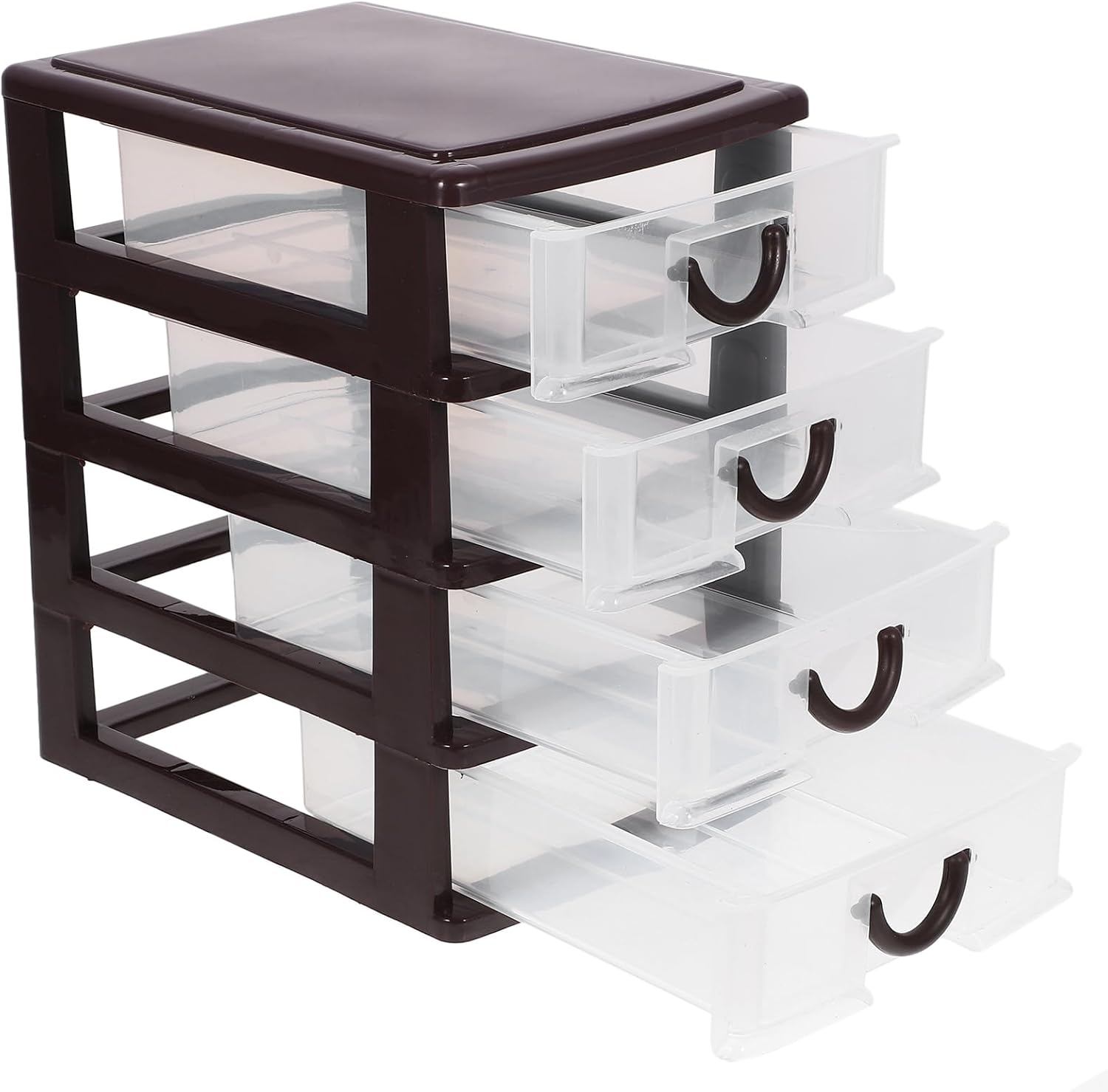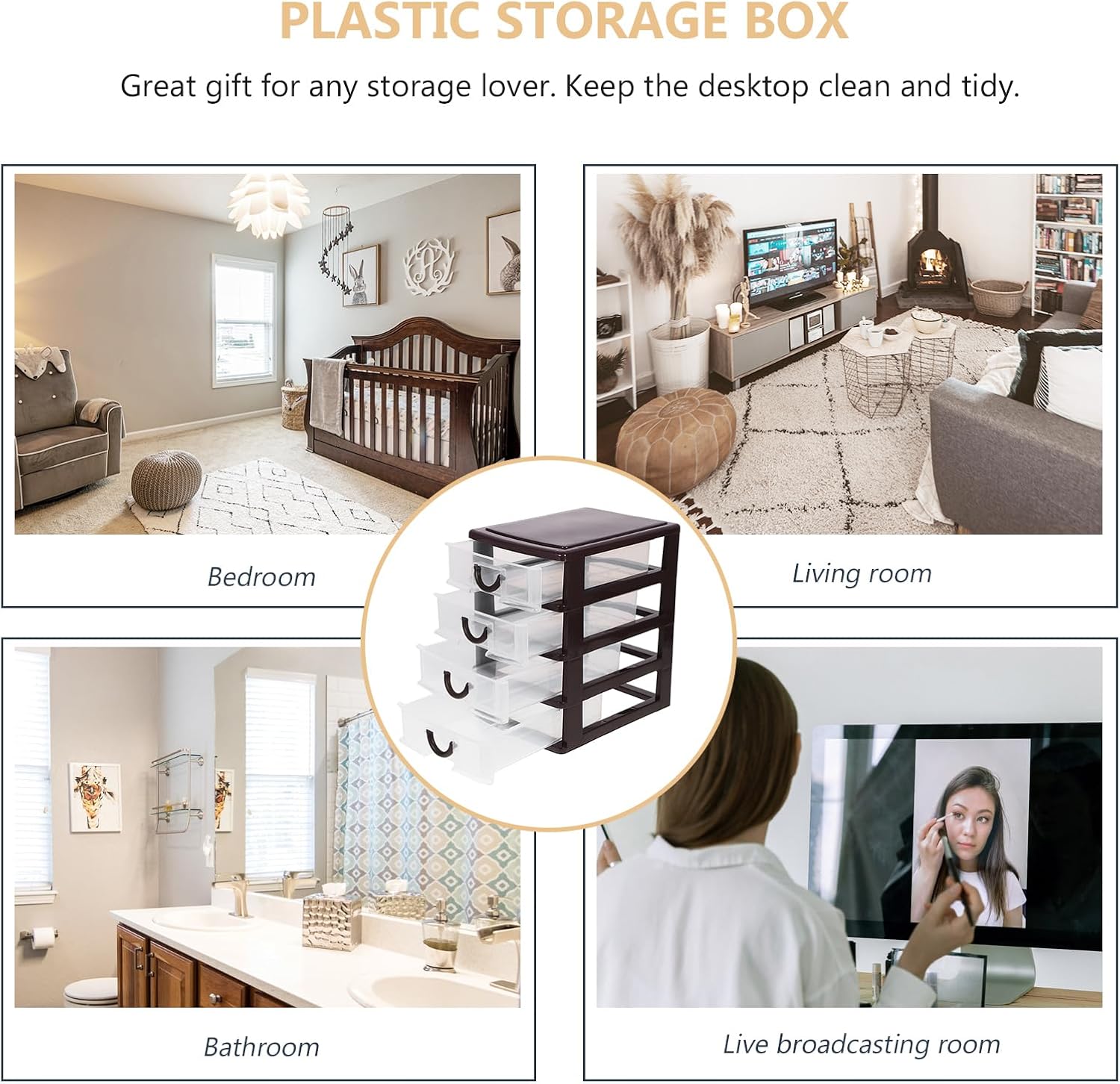 STOBAZA 4 Tier Plastic Storage Drawer Units, Home Office Storage Organizer Case Clear Plastic Drawers Organizer, Small Storage Drawers Containers, Cosmetics Makeup Organizer Station Cube
