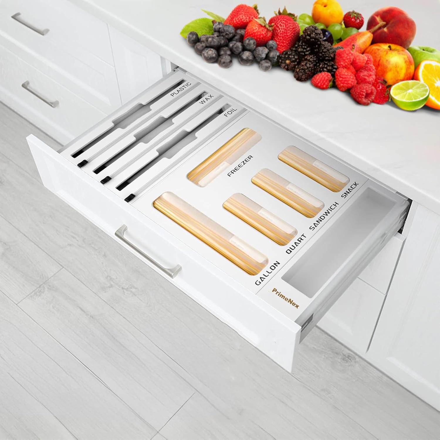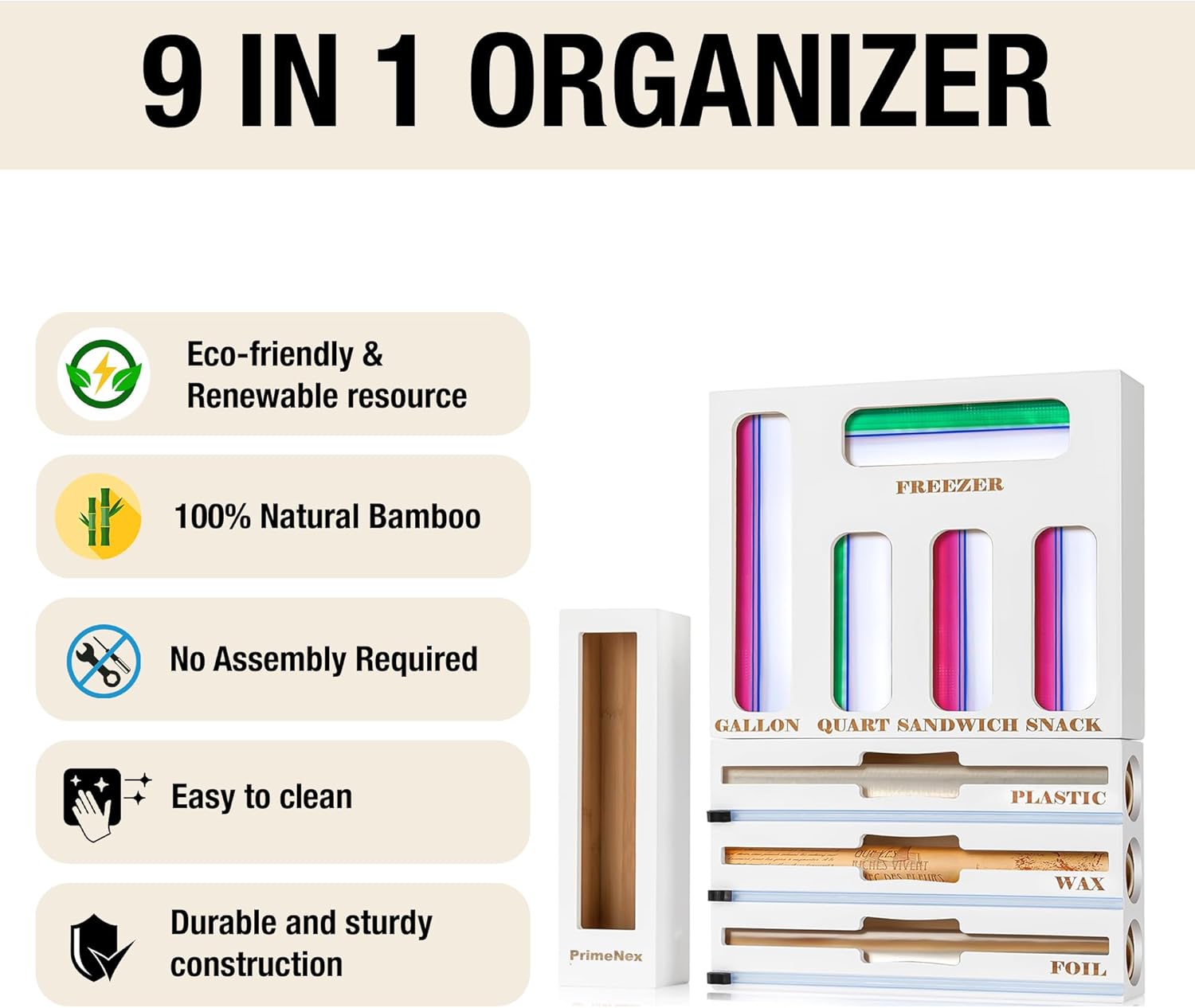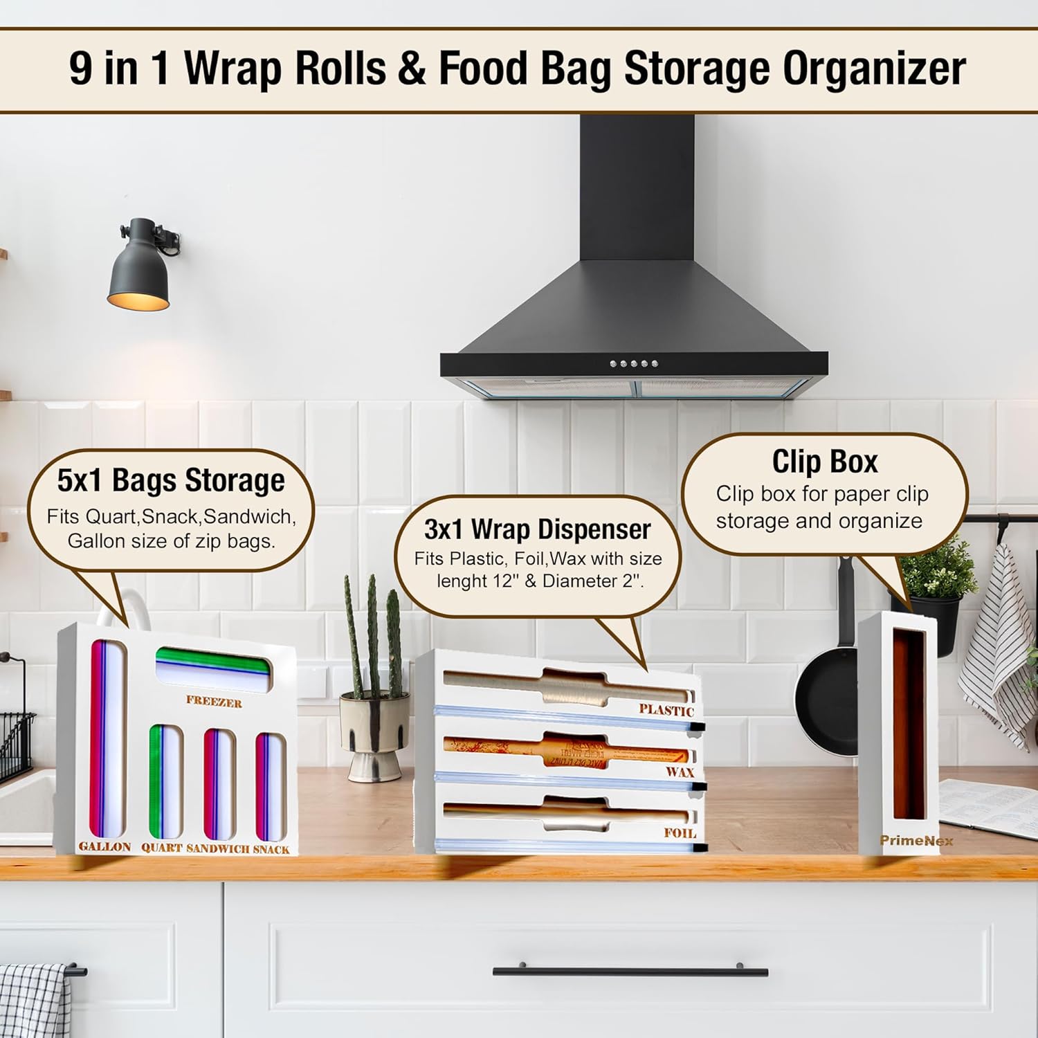 ✅【9 IN 1 Baggie & Foil Dispenser 】This set contains 5in1 storage bag organizers & 3in1 foil and plastic wrap dispenser with cutters. Perfect for Aluminum foil, plastic wrap, wax paper. Please kindly note: only fits wrap rolls that length is≤12 inch, and diameter≤3 inch.