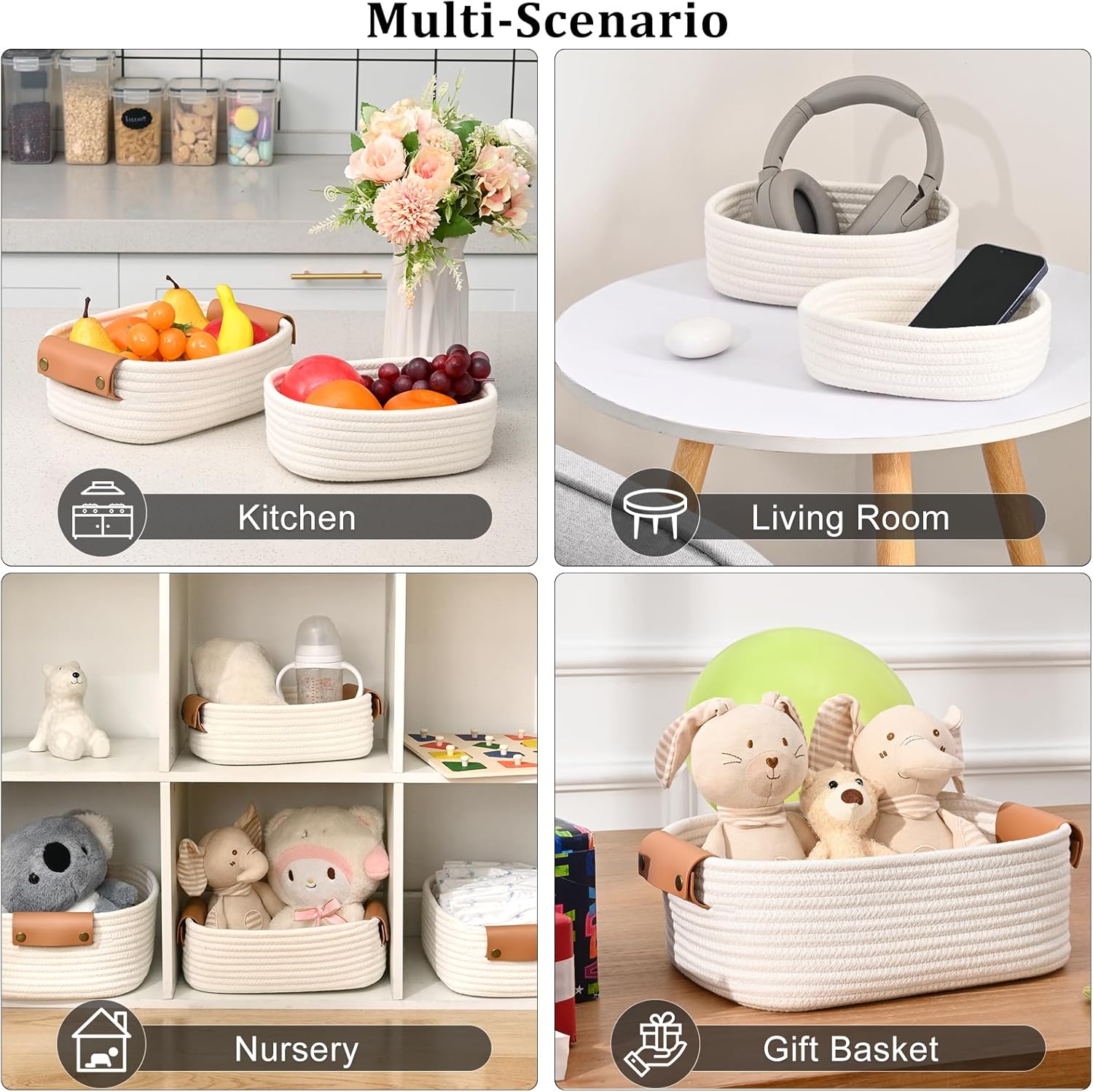 Safe & Natural Cotton: Crafted from pure, natural cotton, these storage baskets are soft, breathable and free from harmful chemicals. The non-toxic materials make them baby-safe and pet-friendly, perfect for organizing nursery essentials or pet accessories with peace of mind.