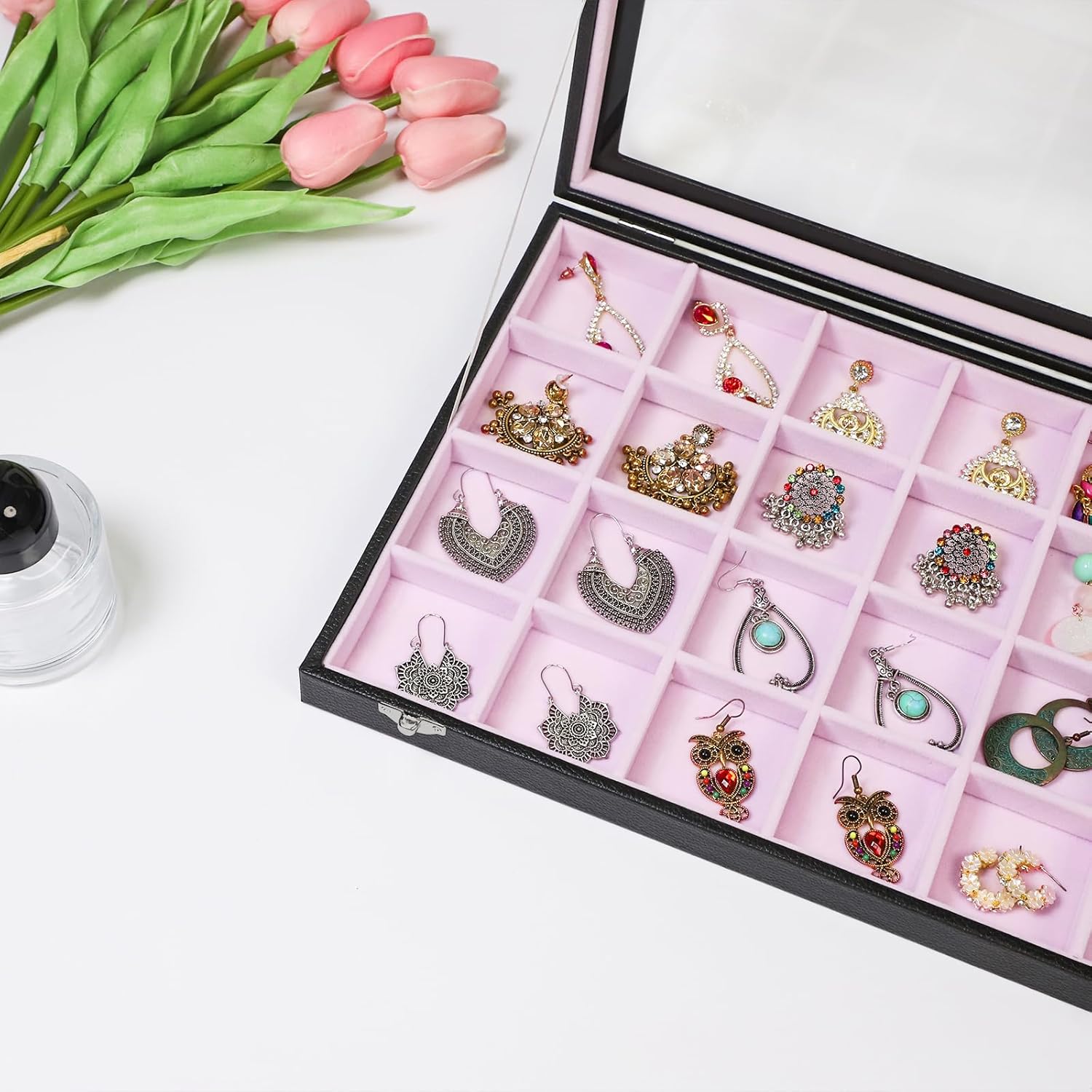 Customers find the jewelry organizer to be a great earring storage solution that keeps everything organized and safe. The product features actual glass lid and fits up to 30 pairs of dangling earrings perfectly, with one customer noting the slots are big enough to accommodate each pair. They appreciate its sturdy construction, nice appearance, and easy-to-find design, while also considering it worth the price.