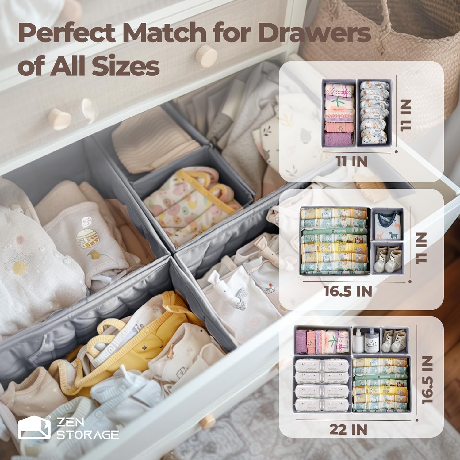 [ENGINEERED FOR SUPERIOR STURDINESS] – Unlike flimsy alternatives, our nursery dresser organizers feature 2mm thickened cardboard inserts and a durable bottom zipper. This robust construction ensures each bin holds its shape, providing a reliable framework for all your baby clothes organizers and storage needs.