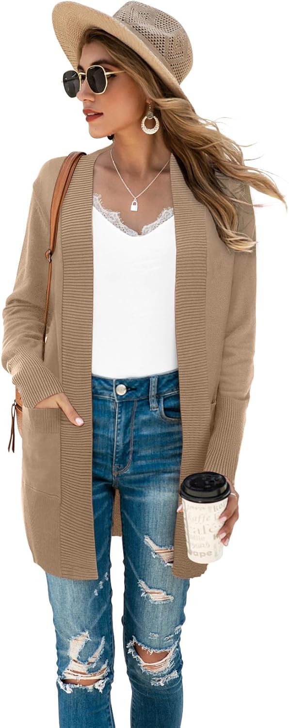 Women’s Open Front Long Sleeve Knit Classic Sweaters Cardigan with Pockets Women's Open Front Casual Long Sleeve Knit Classic Sweaters Cardigan with PocketsWomen's Open Front Casual Long Sleeve Knit Classic Sweaters Cardigan with Pockets