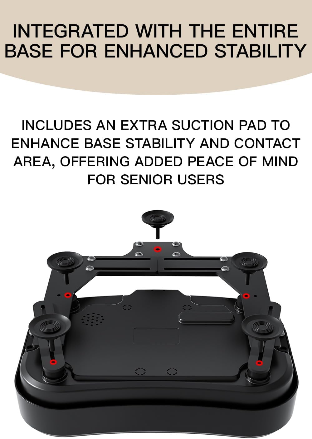 The handle features an additional stabilizing suction cup on top of the four suction cups on the main body, increasing the base area of the vibration exercise machine. This enhancement provides greater stability during standing or semi-squatting exercises. The handle is easy to install, making it especially suitable for rehabilitation and massage for older adults. Please ensure proper installation and use according to the instruction manual.