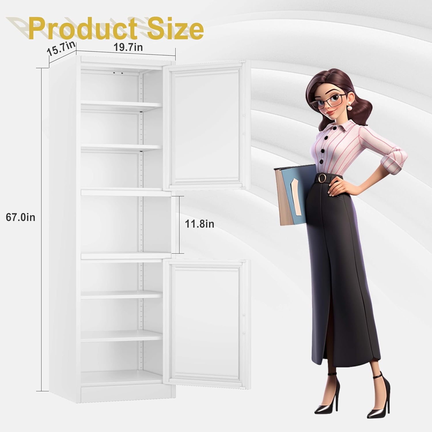 【PERFECT FOR SMALL SPACES】: Kitchen pantry storage cabinet is designed with convenience and functionality in mind. Its size measures 19.7″L x 15.8″D x 67.0″H, making it perfect for narrow spaces or to be placed behind a door. Despite the small floor area, it offers ample storage space with 4 adjustable shelves and 1 open storage space, allowing you to keep your items organized and easily accessible.