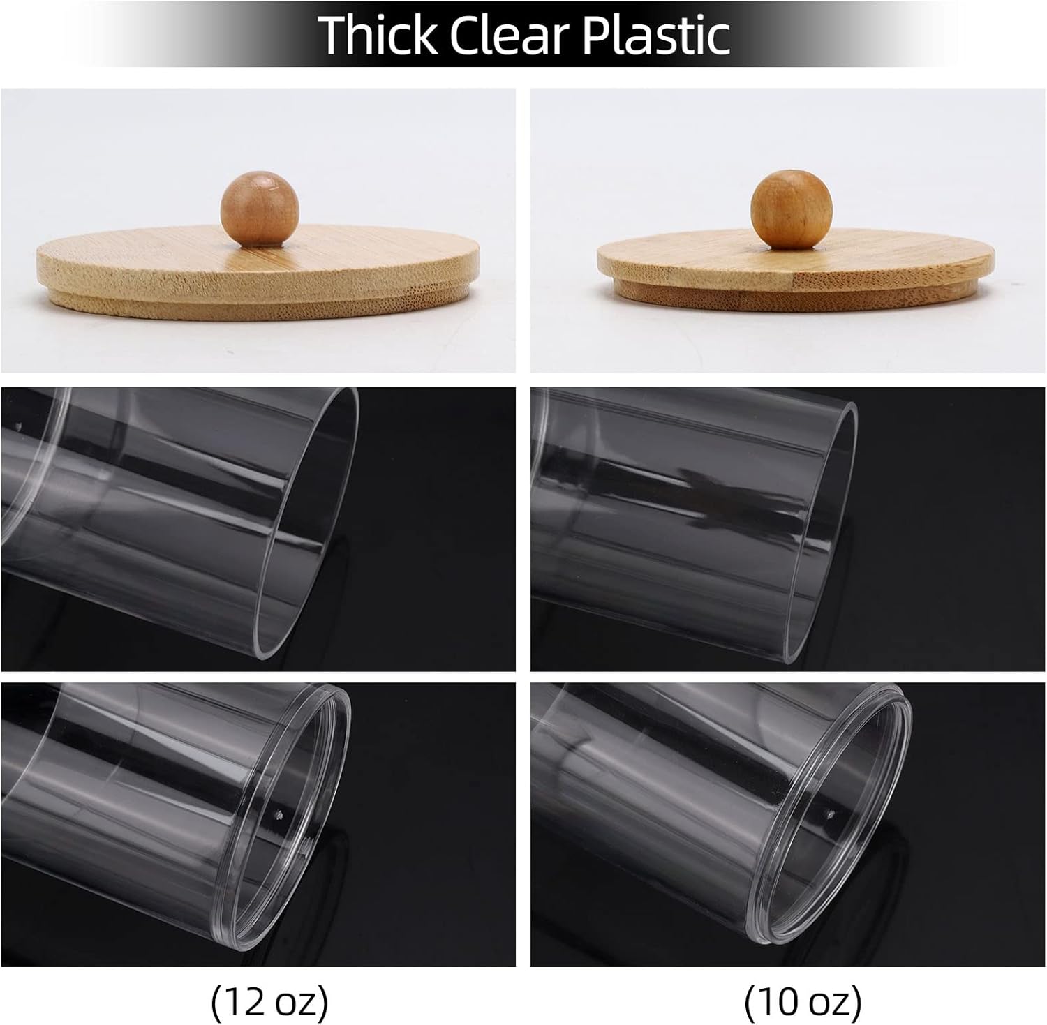 Tbestmax 4 Pack Qtip Holder 10-Ounce Bathroom Storage Containers Clear Plastic Apothecary Jars with Lids for Organizing Cotton Ball, Cotton Swab (Black Bamboo Lids)