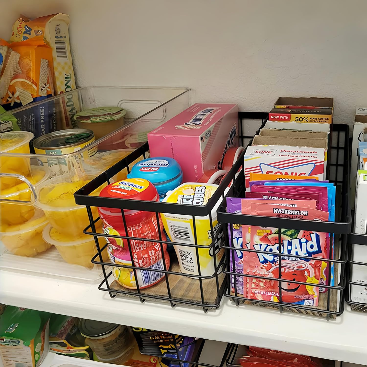 STURDY & PRACTICAL DESIGN: Crafted from durable black metal with solid wood bottoms, these baskets offer a stylish and functional storage solution for your home. The combination of black metal and wooden accents creates a trendy farmhouse or industrial look that complements a variety of decor styles.