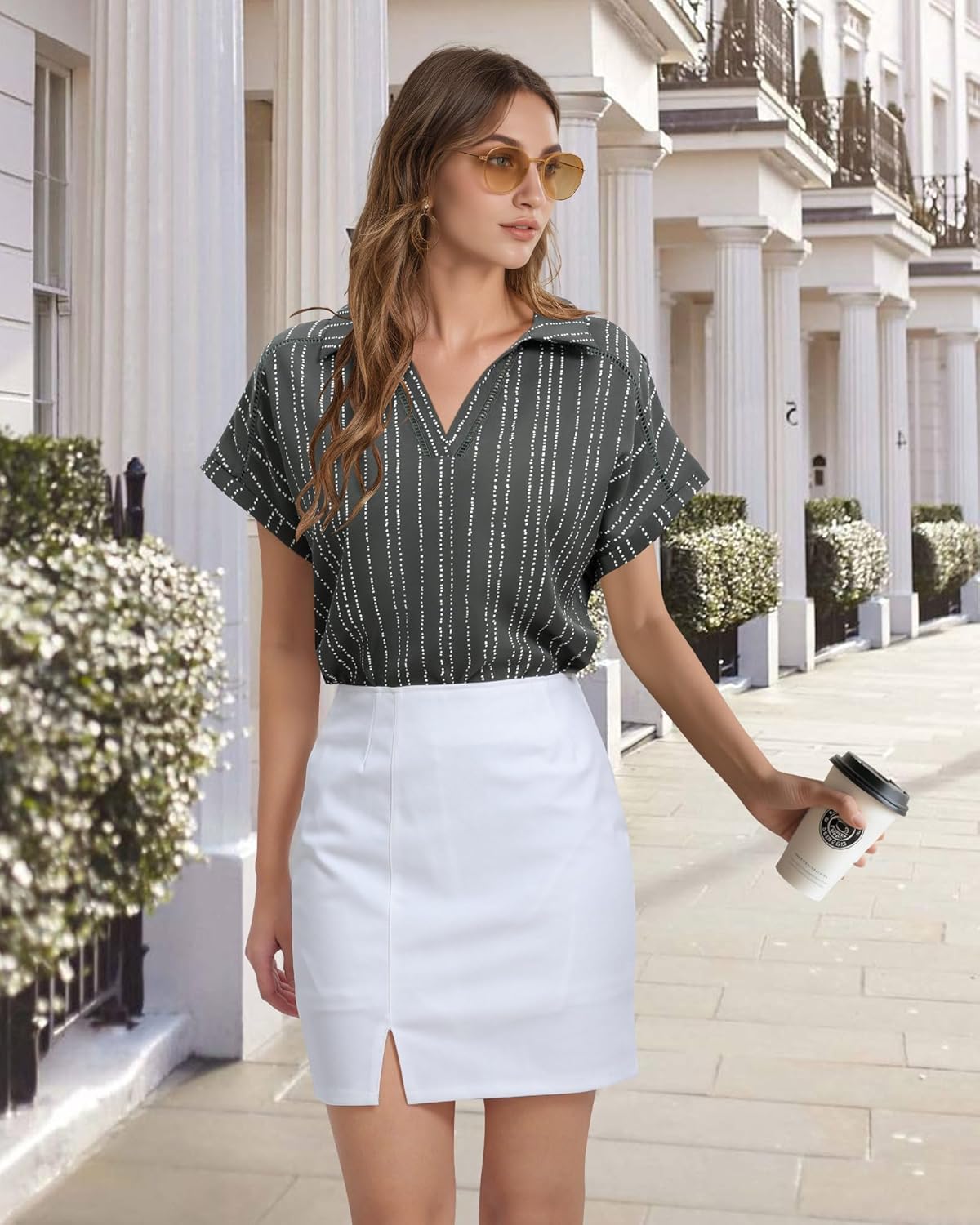 This ladies summer blouse look great with a pair of jeans, white or beige shorts, and even a blazer for work!