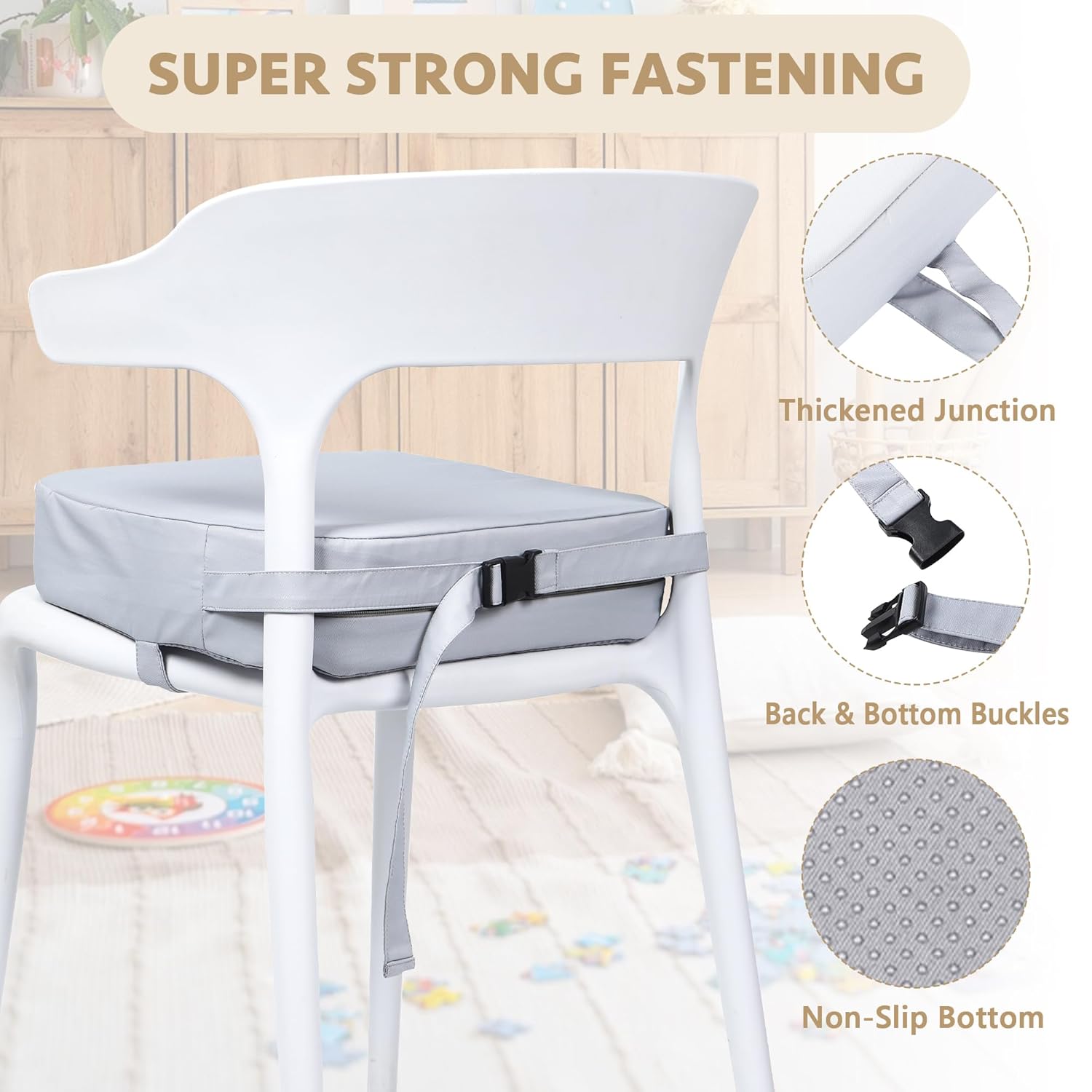Toddler Booster Seat for Dining Table, Portable Kids Booster Seat with Safety Buckles, High Cushion for Travel with Non-Slip Bottom (Gray)