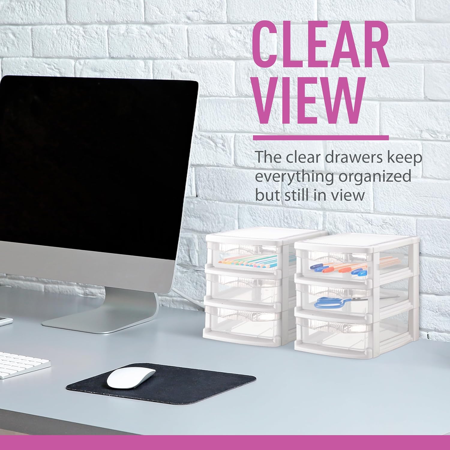 The Small 3 Drawer Unit features three clear drawers that neatly contain items but still allow contents to be easily identified