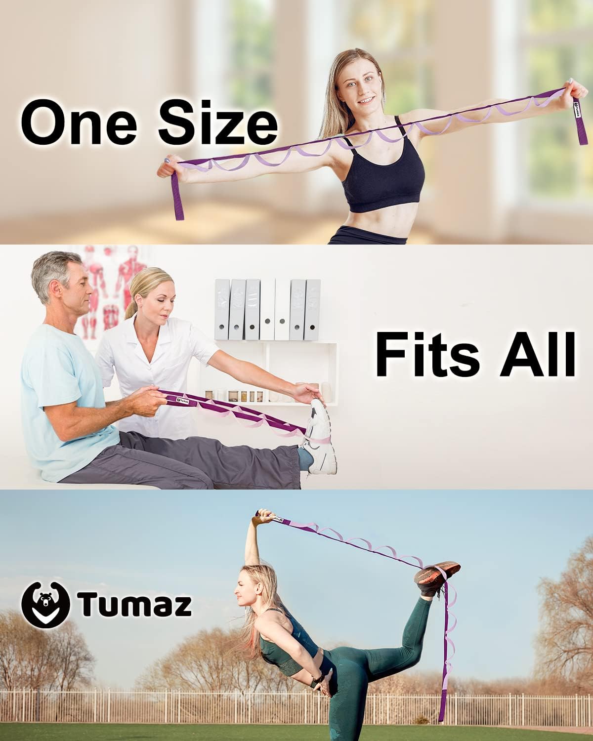 A: The Tumaz stretching strap is designed for the professional yogi/yogini, physical therapist, dancer, and it is also the perfect choice for your daily stretching or workout.