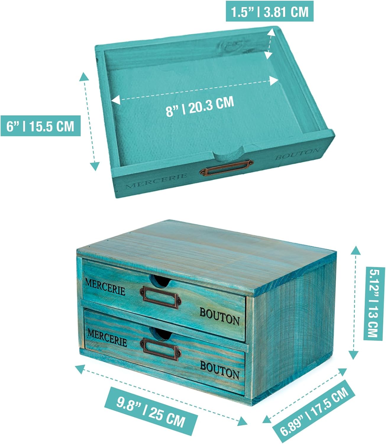 Be the first to review “Turquoise 2-Tier Drawer Unit – European Country Style Desk Organizer Box – 9.7x7x5.1″ Teal Wooden Stackable Drawers – Countertop Organizer Drawers w/Label Holder – Double File Drawer Unit”