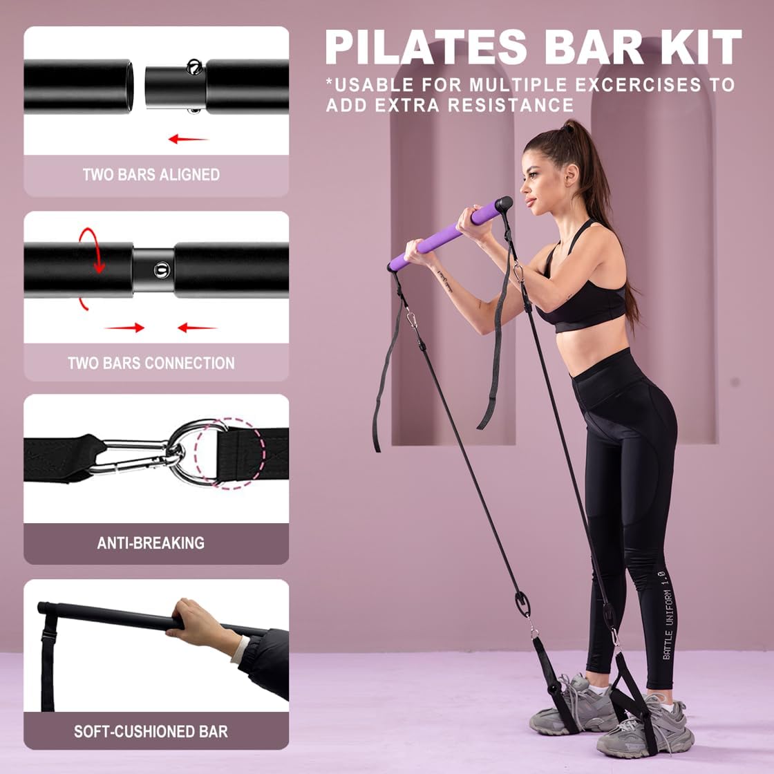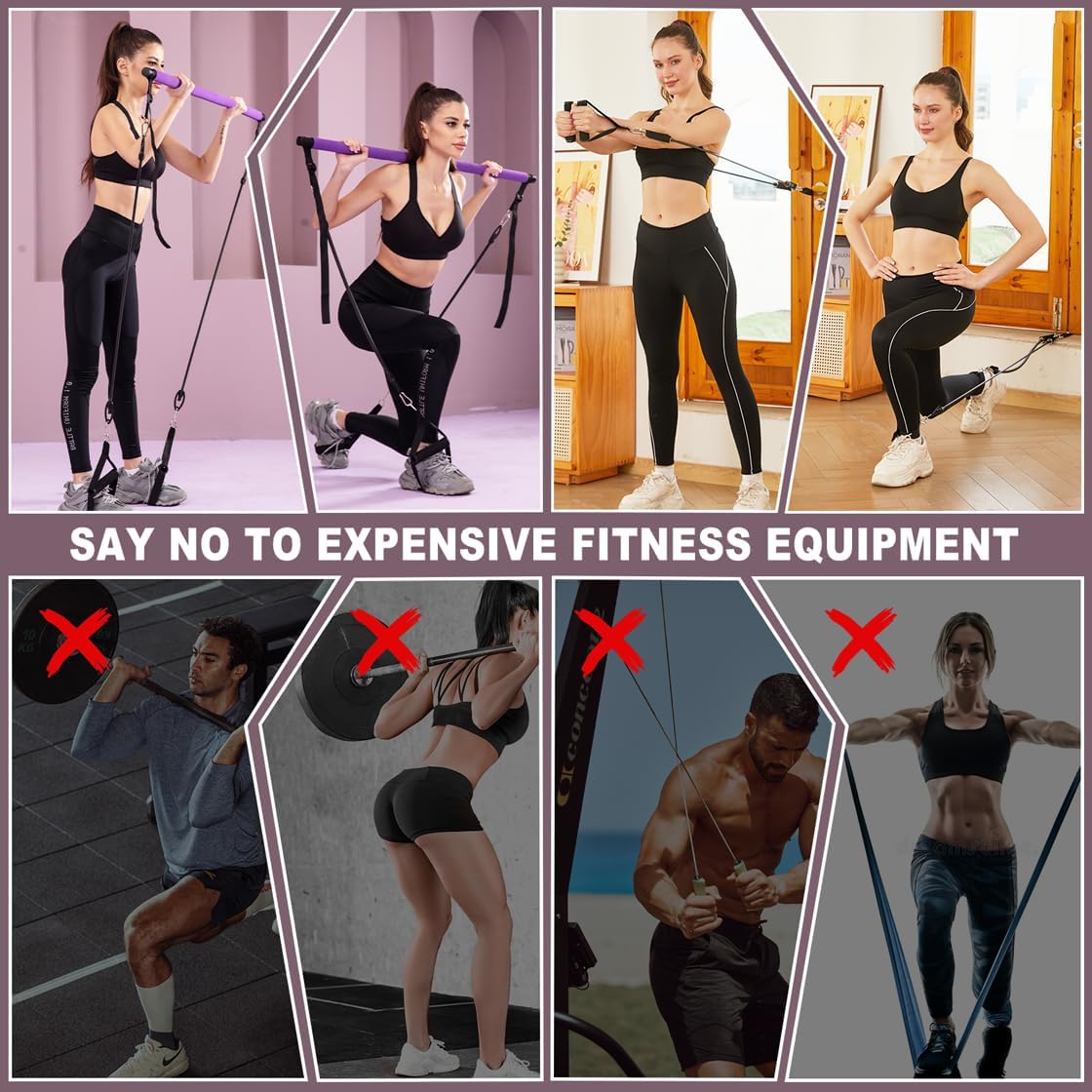 Ultimate Pilates bar kit.Multiple Fitness bar with Resistance Bands, Ab Rollers. Core Strength Training Equipment. Squat Machine for Men and Women. Portable Home Gym