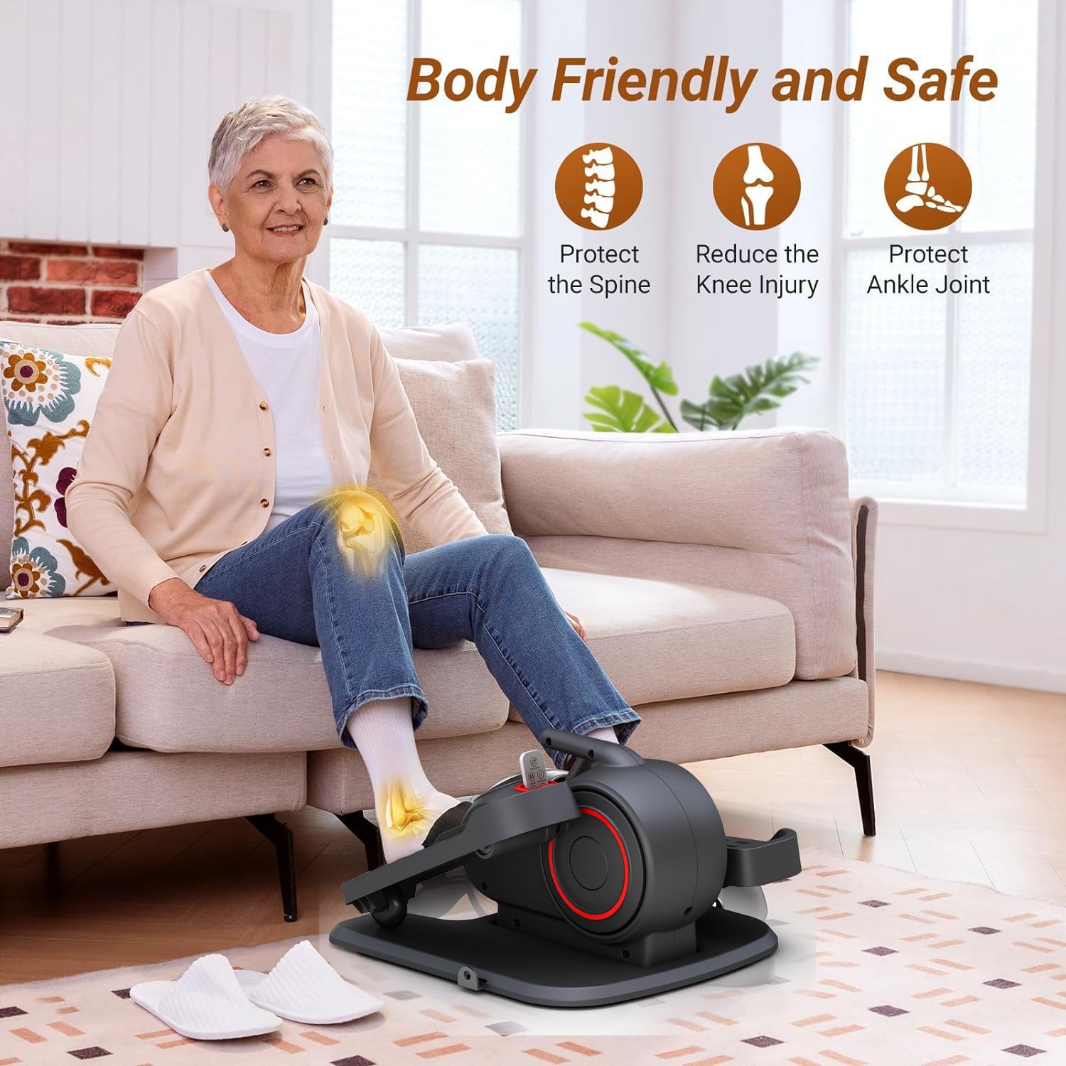 【Reliable Quality & Easy-move】Strong and durable materials for the upgraded ellipse leg exerciser machine. They have undergone strict quality control and testing to withstand long-term use. Protruding handles are designed for seniors to grip and move to any place.