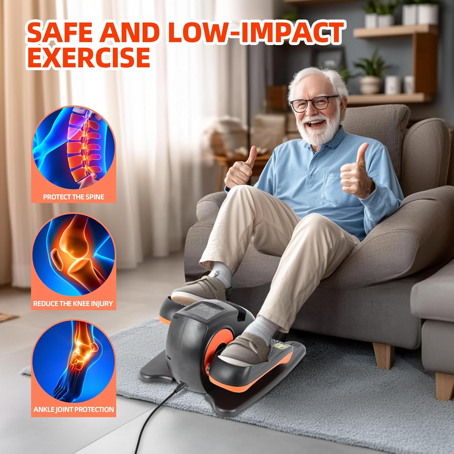 【Remote Control】Under desk elliptical pedal exerciser for seniors feature with thoughtful remote control allows you to change mode without bending over, reducing strain on your back. This means you can work or relax while seated and still get the exercise you need.